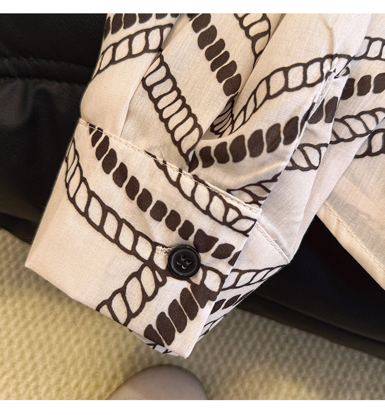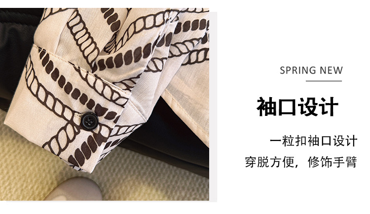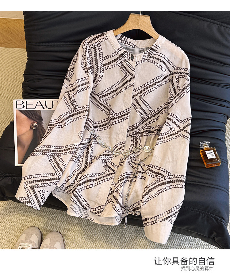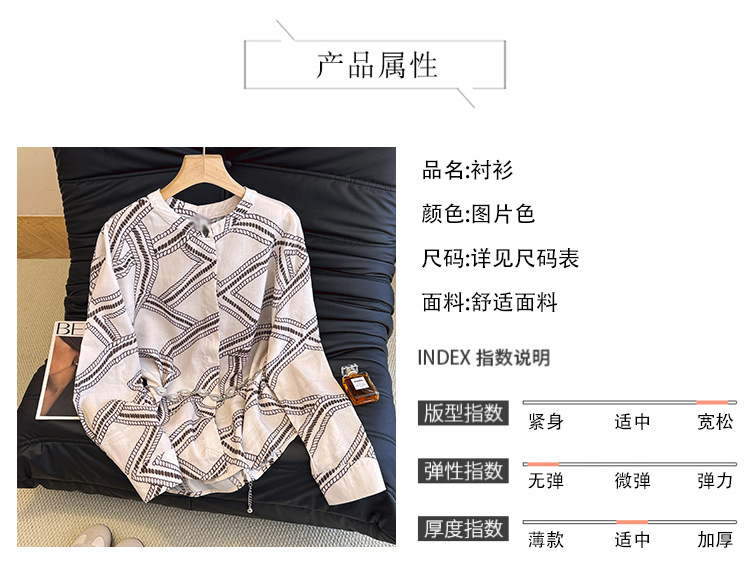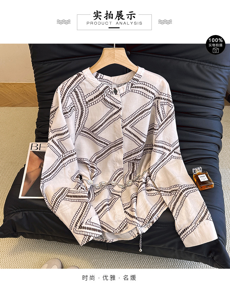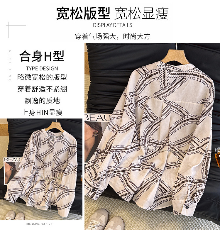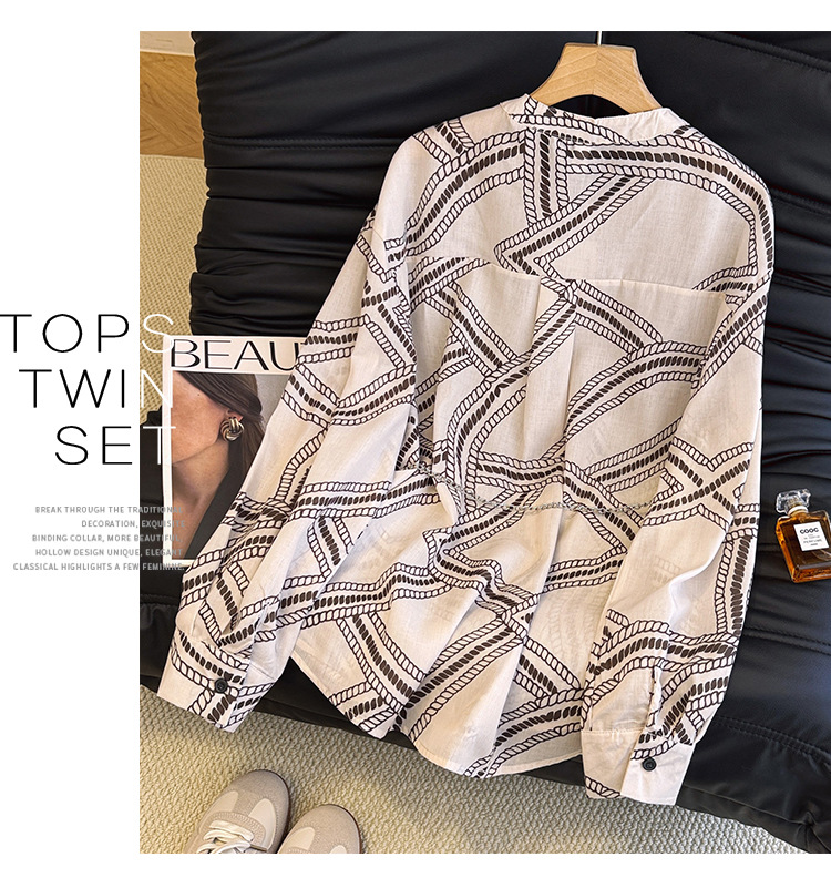 雀说春秋季新款印花长袖立领老钱风女式衬衫几何时尚减龄衬衫ALW