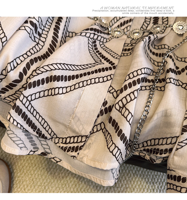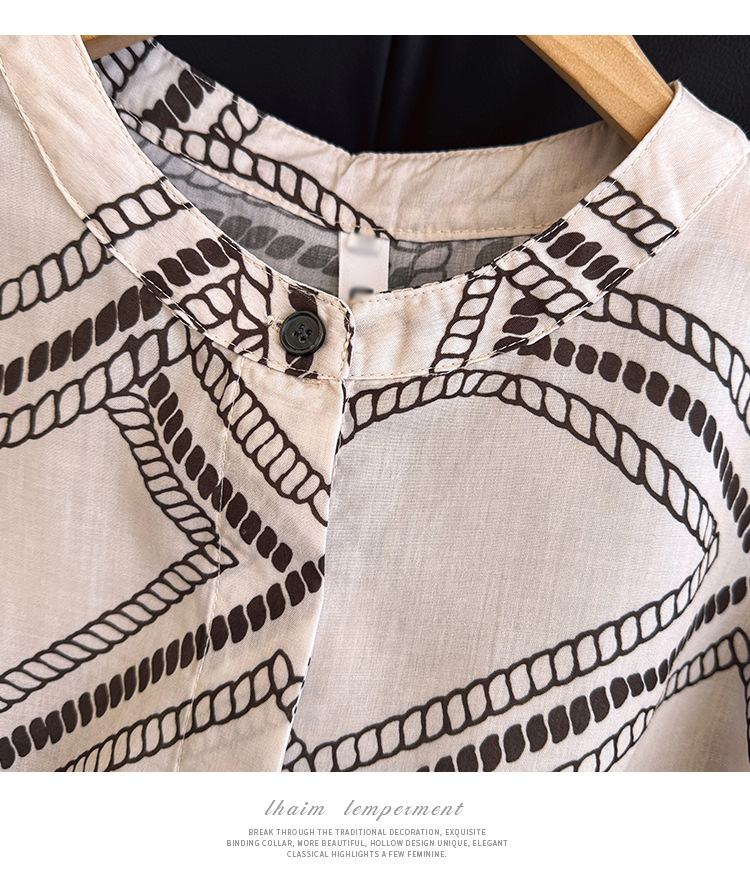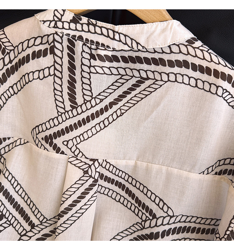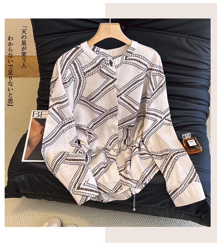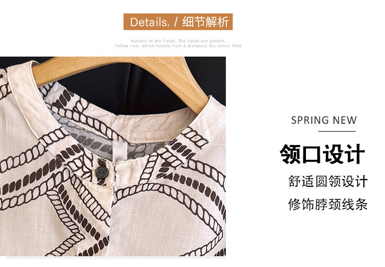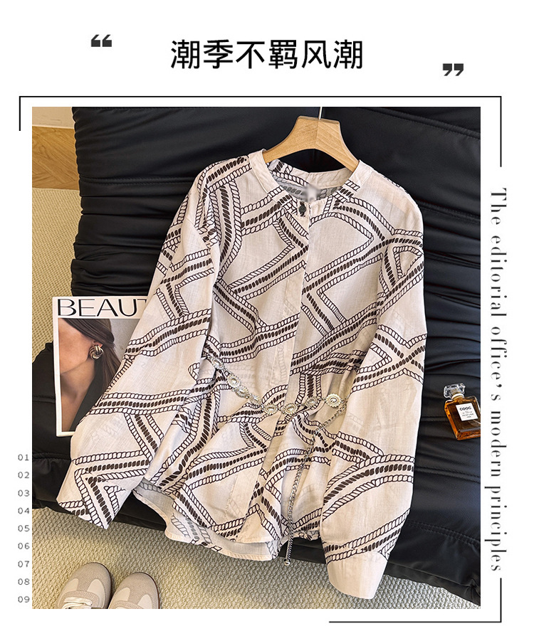 雀说春秋季新款印花长袖立领老钱风女式衬衫几何时尚减龄衬衫ALW