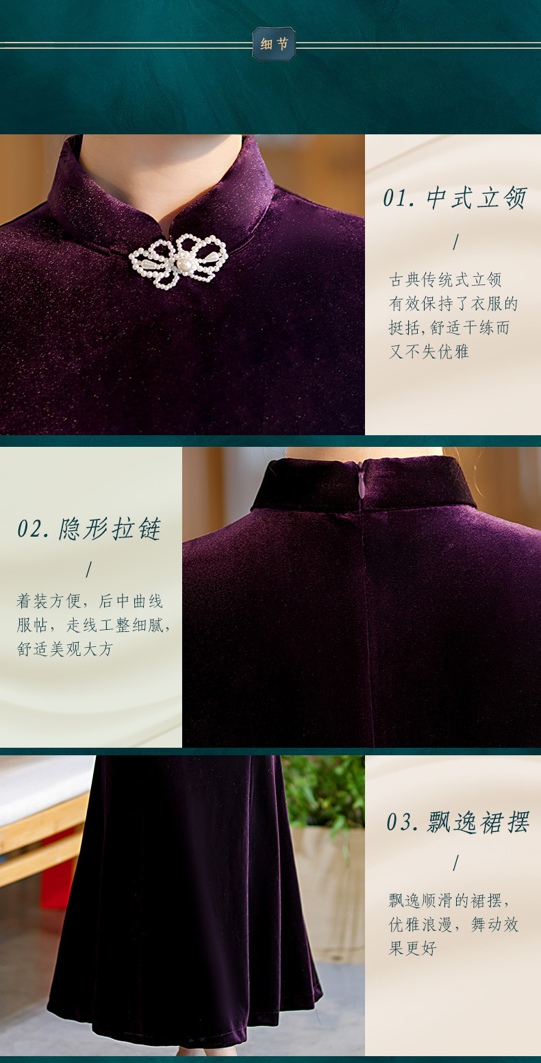 曼丽绒长款温婉少女,毛茸茸日常文艺风气质旗袍MLS-6821