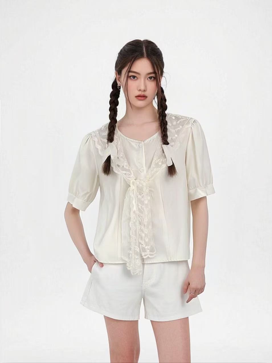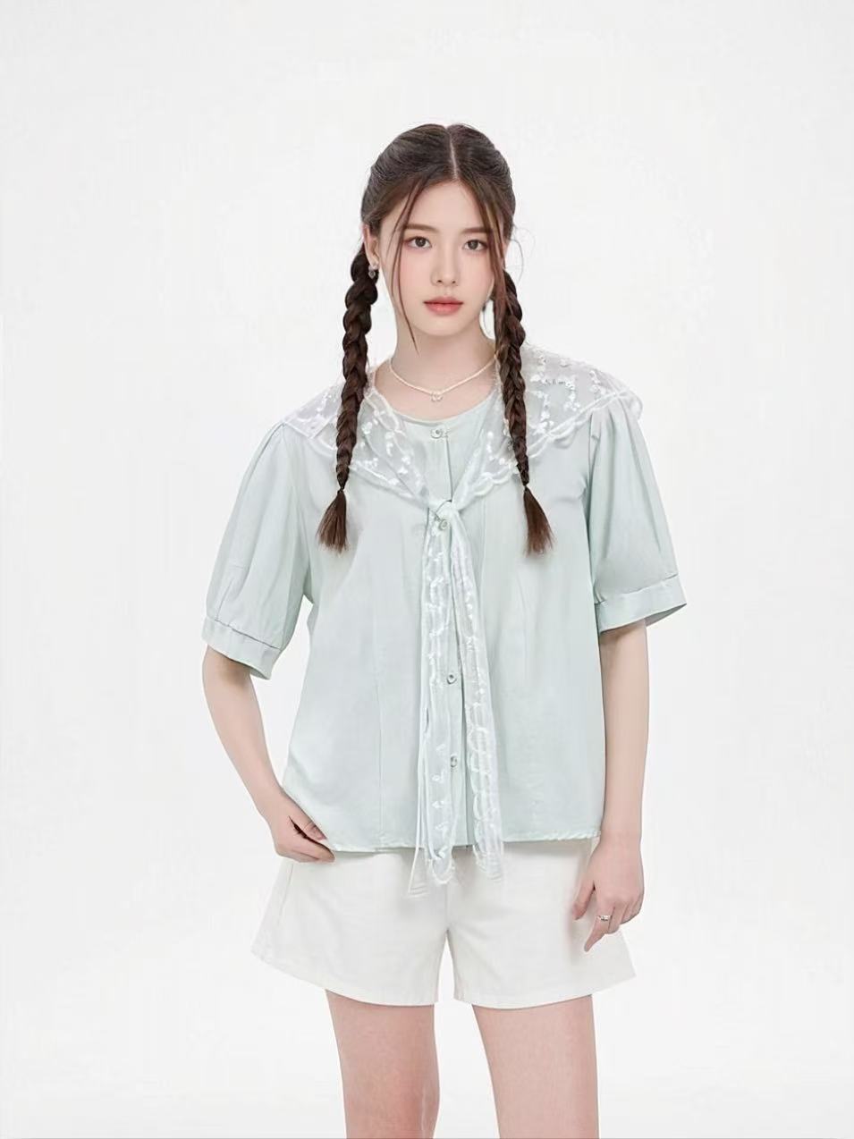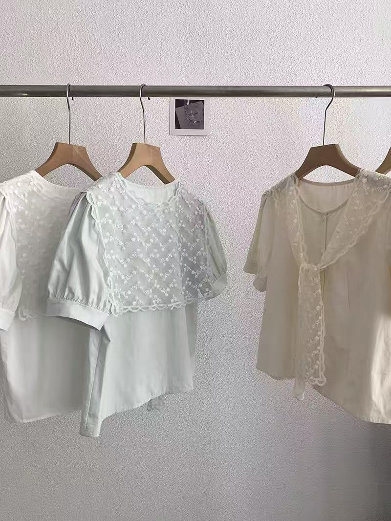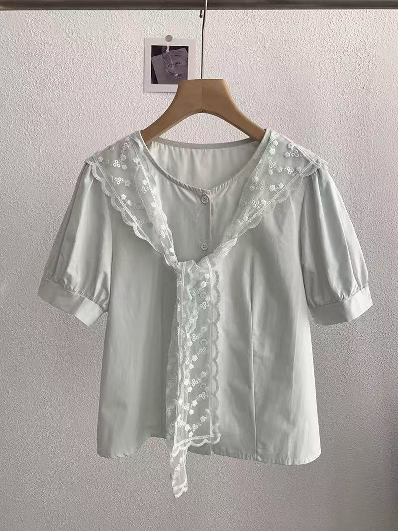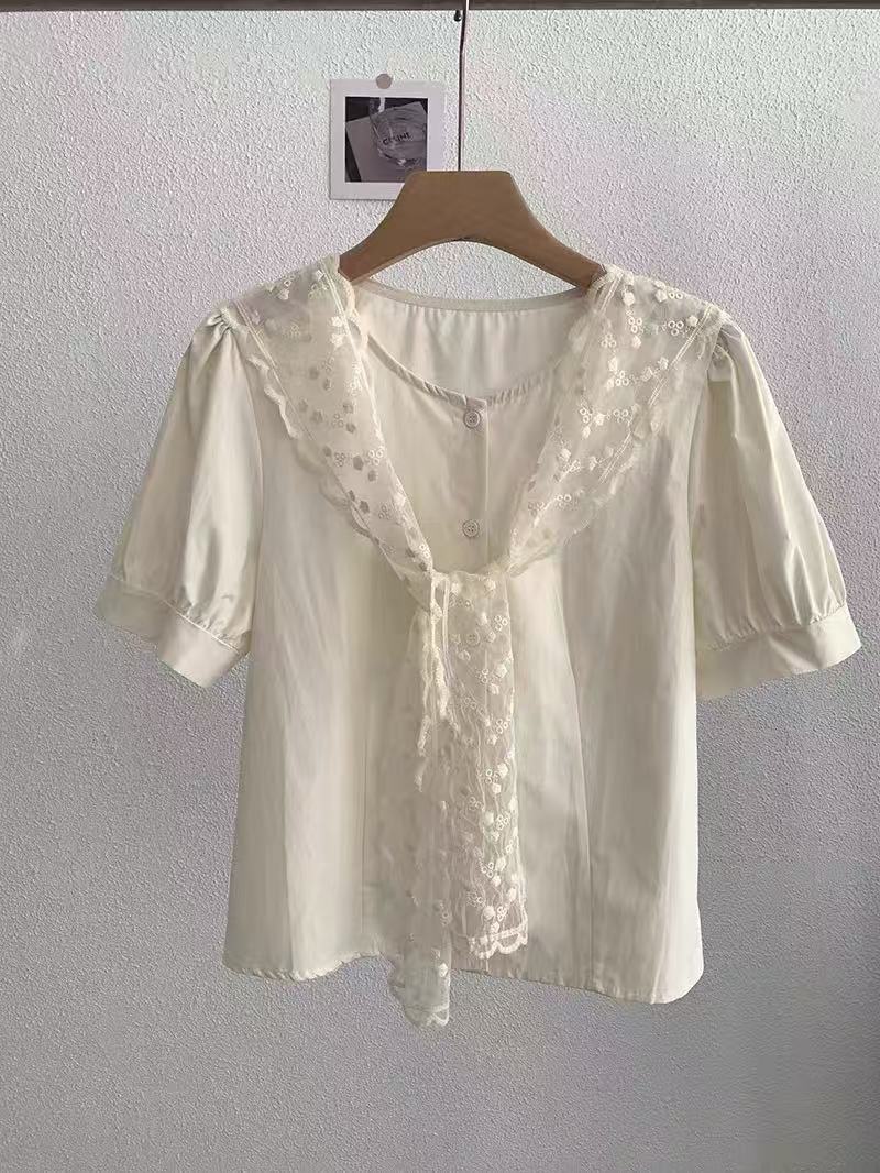 夏季最后清仓【韩系小衫】(赠送披肩)25082棉短款简约短袖小衫-喜出