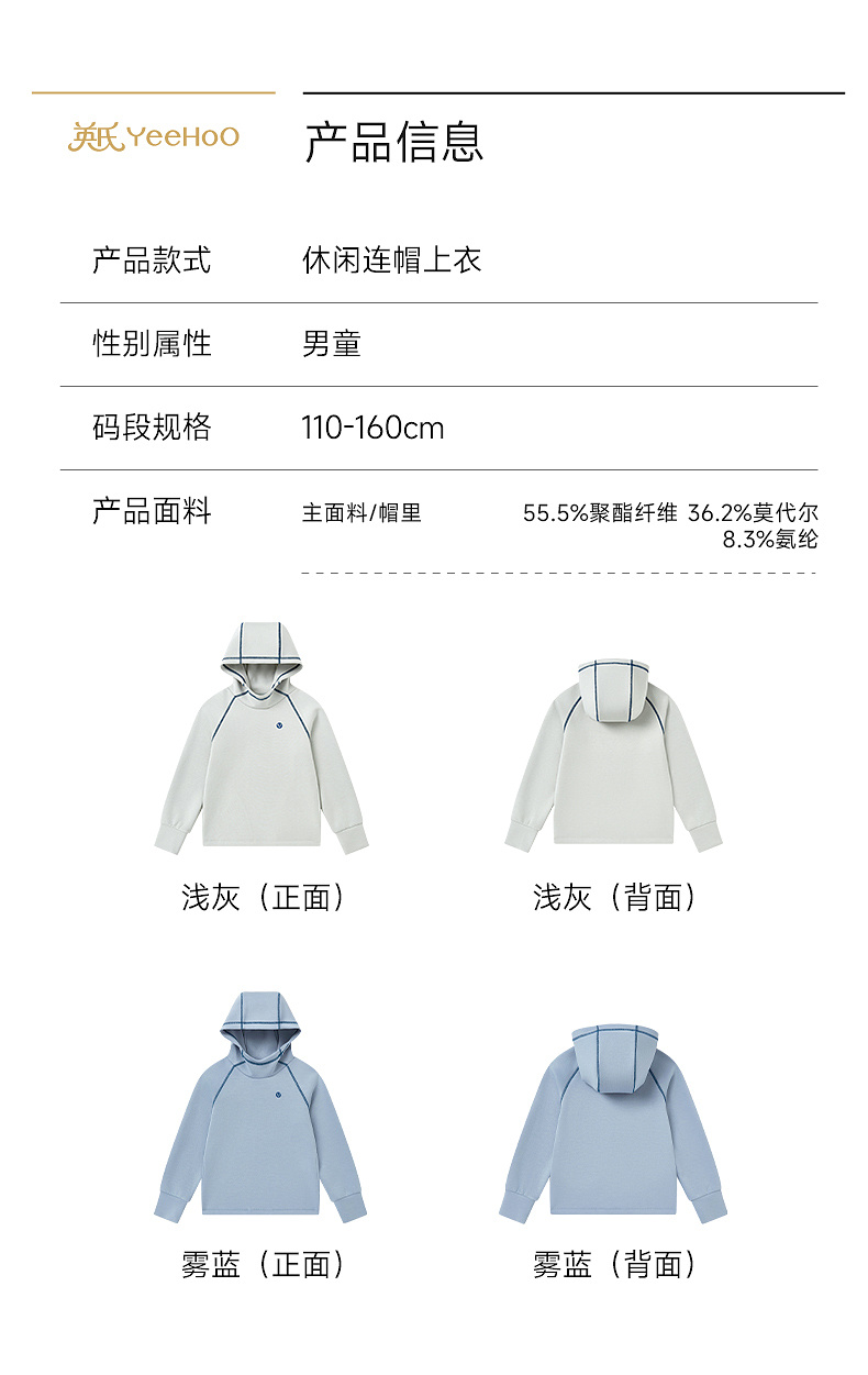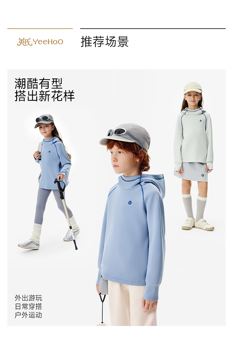 【莫代尔】英氏儿童卫衣男童长袖上衣春秋新款连帽卫衣休闲户外百搭长袖上装