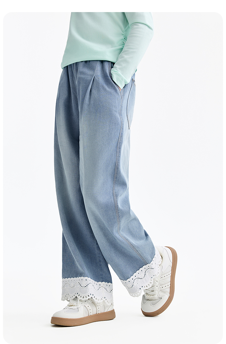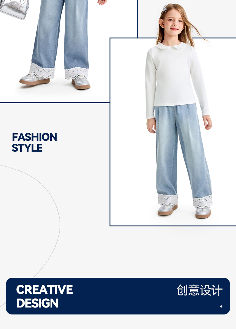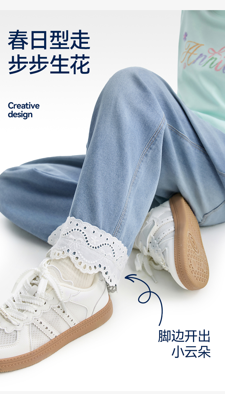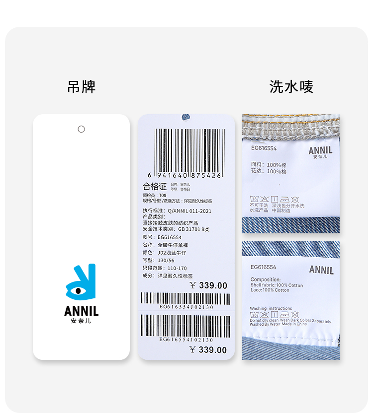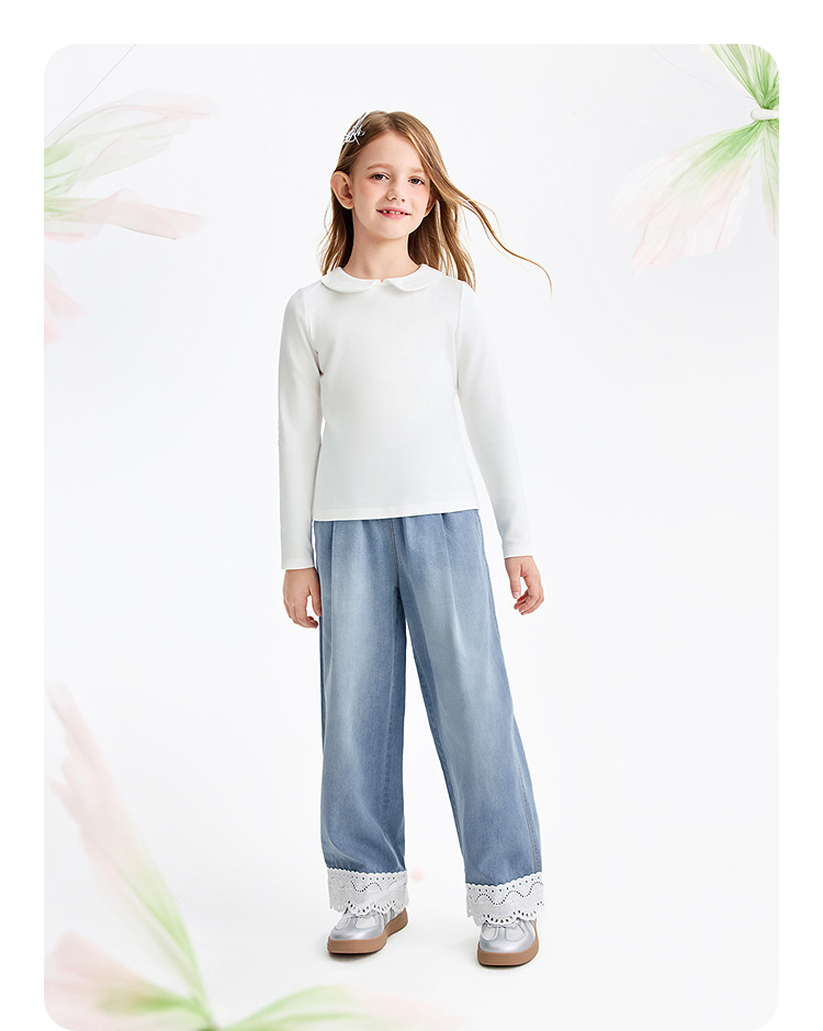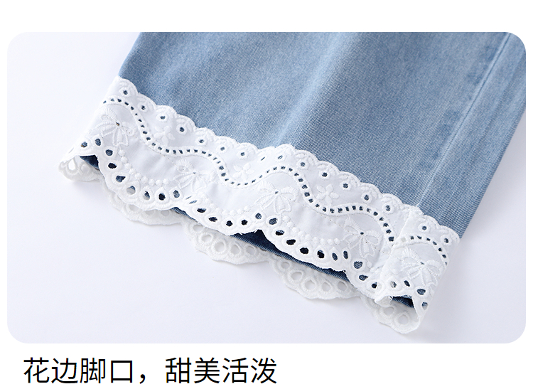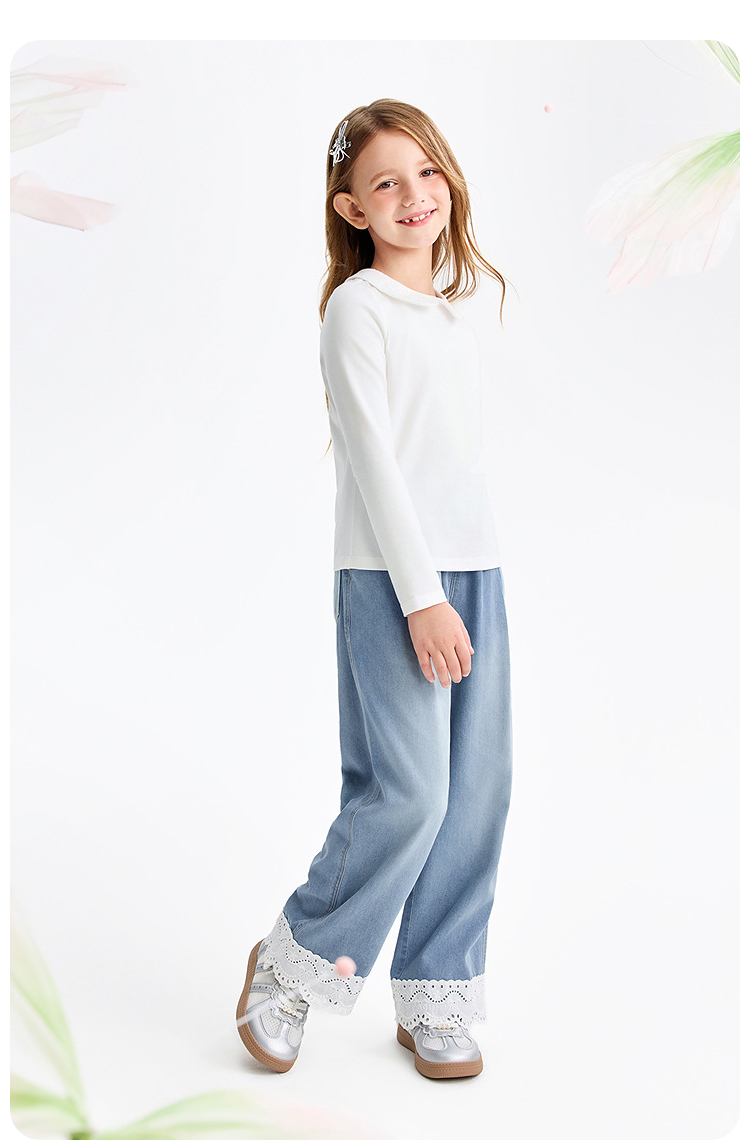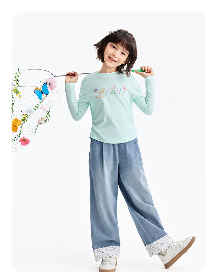 女童全腰牛仔单裤春季新款安奈儿童装EG616554