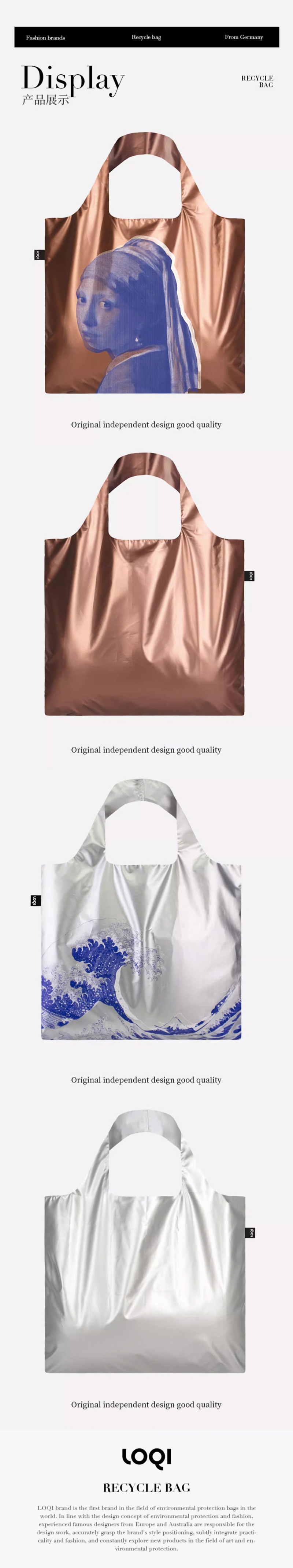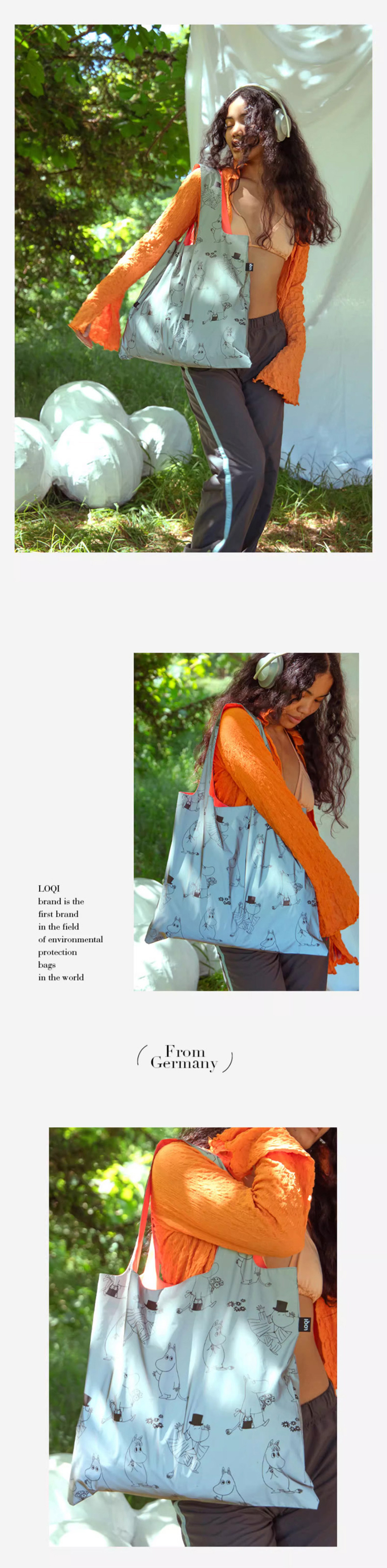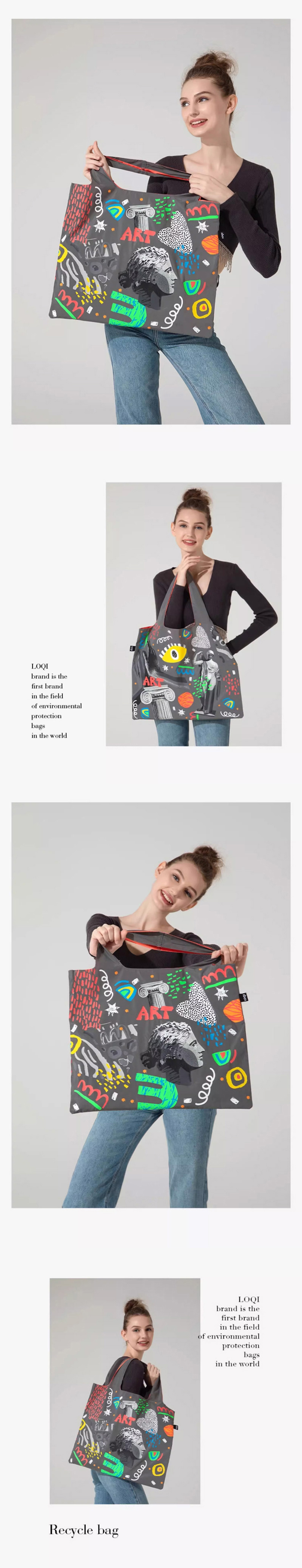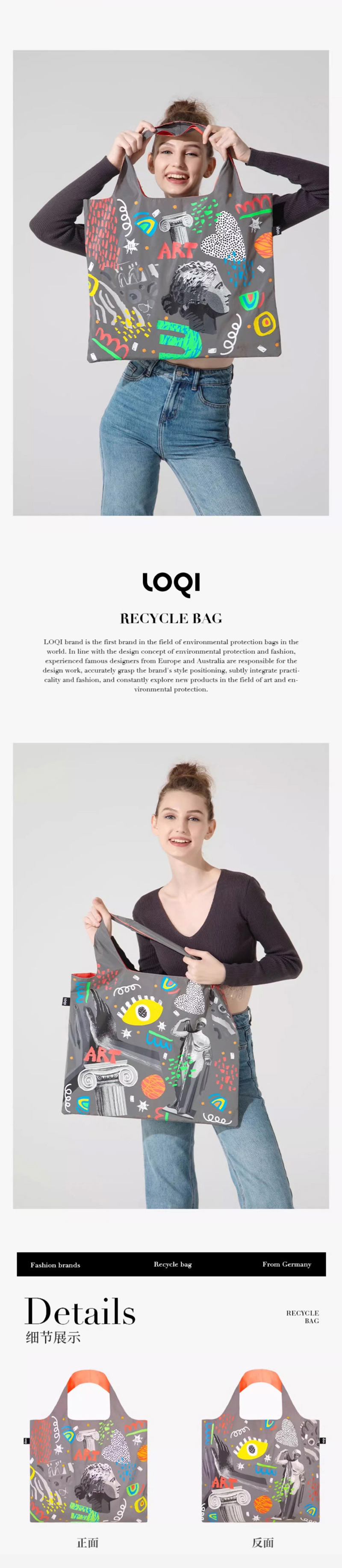 德国LOQI 涂层系列 潮流时尚艺术环保万用袋 折叠大容量单肩手提购物袋承重40斤防泼水