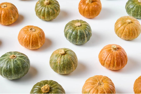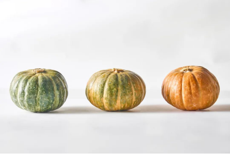①第一阶段:叁色栗栗南瓜刚采摘时,墨绿色,高粉低甜,统一在恒温仓糖化将近一个月才适宜食用;