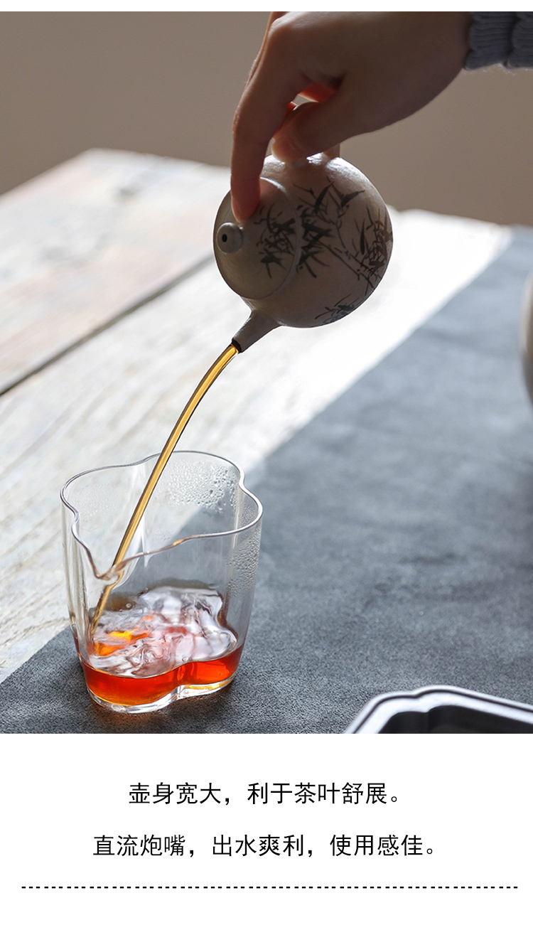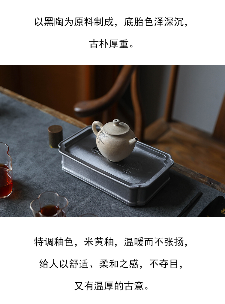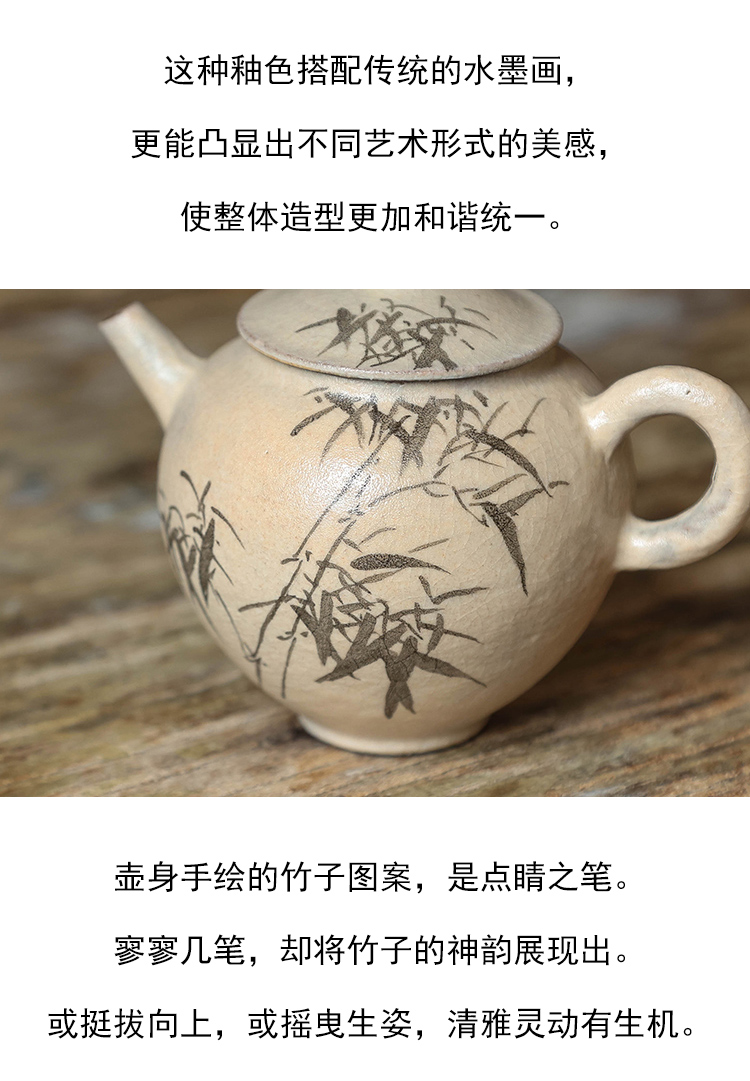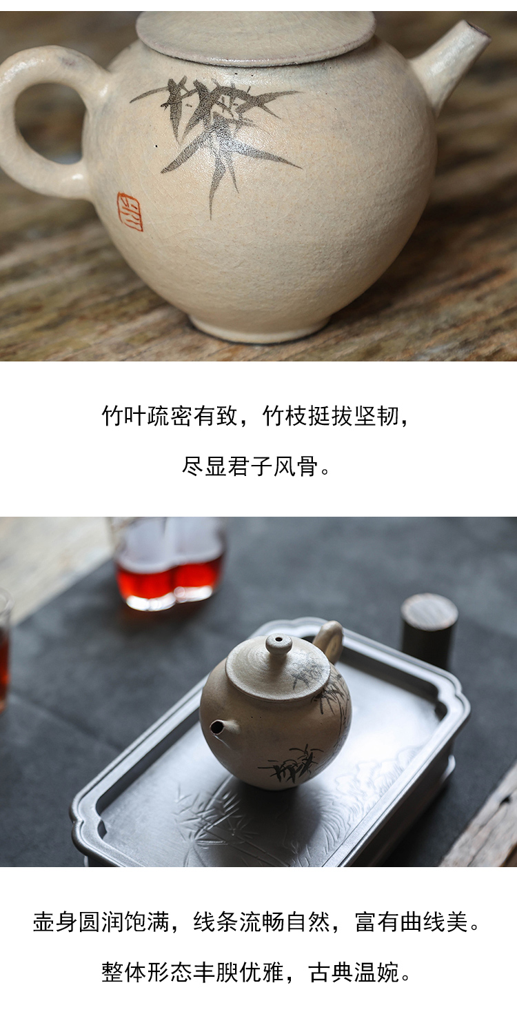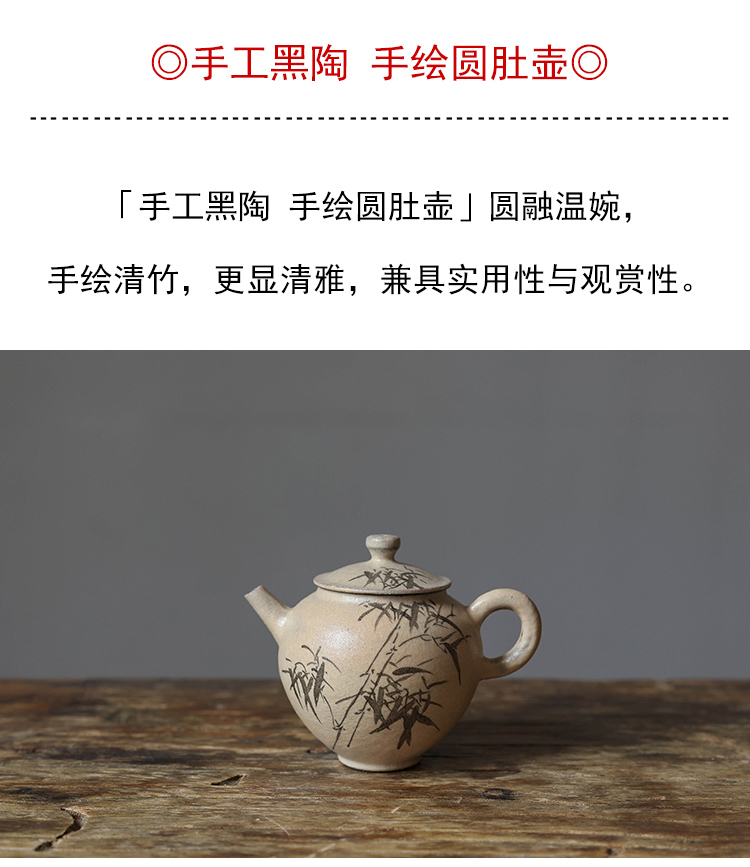 茶香记 手工黑陶手绘圆肚壶120ml景德镇陶瓷素雅泡茶壶意境茶具