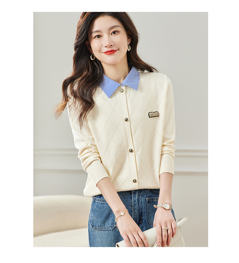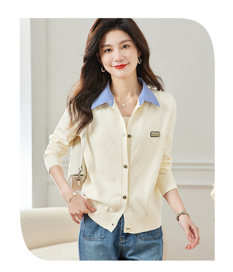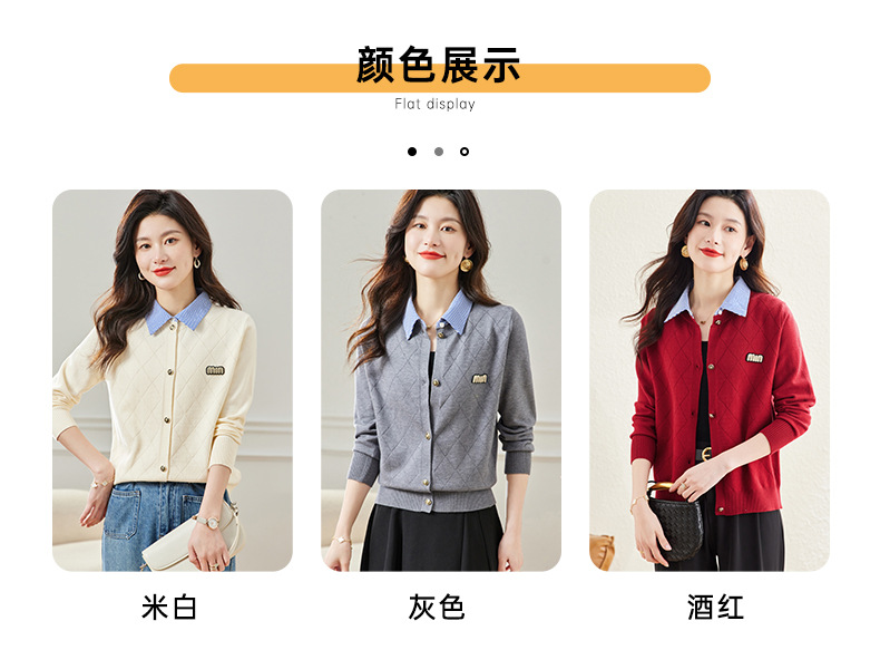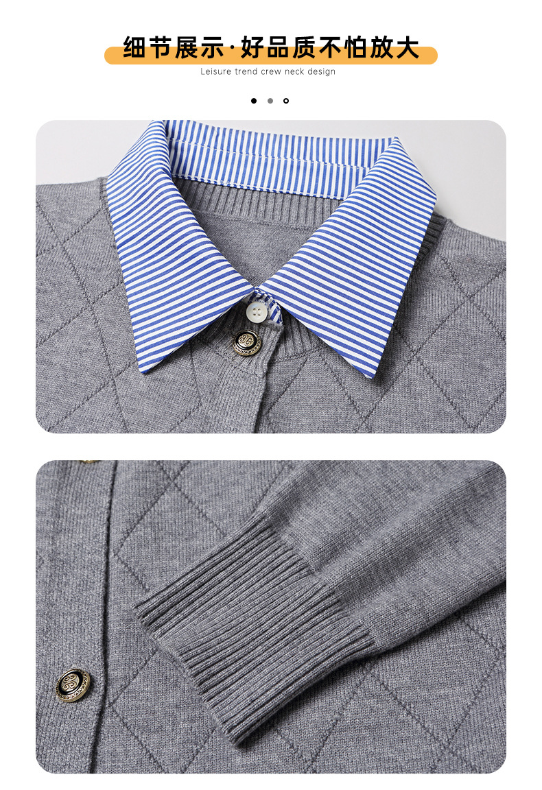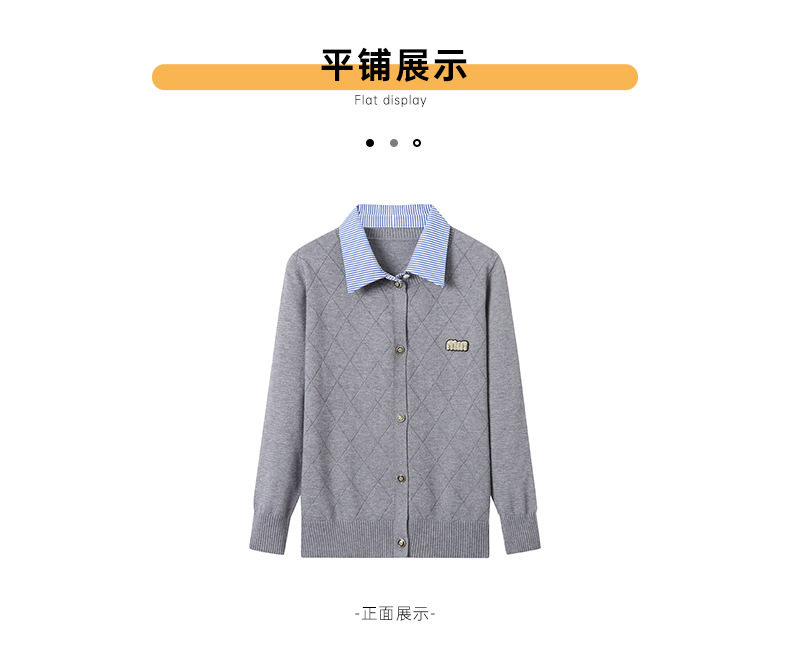 CC66-5801 衬衫领针织衫假两件上衣女2024春秋新款翻领洋气时尚开衫外套