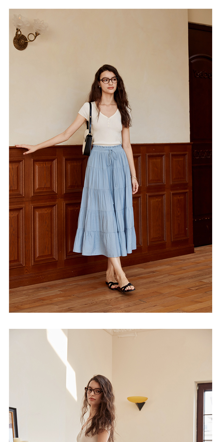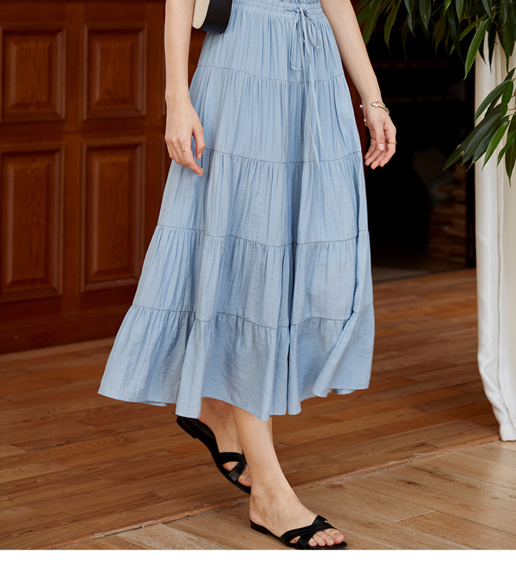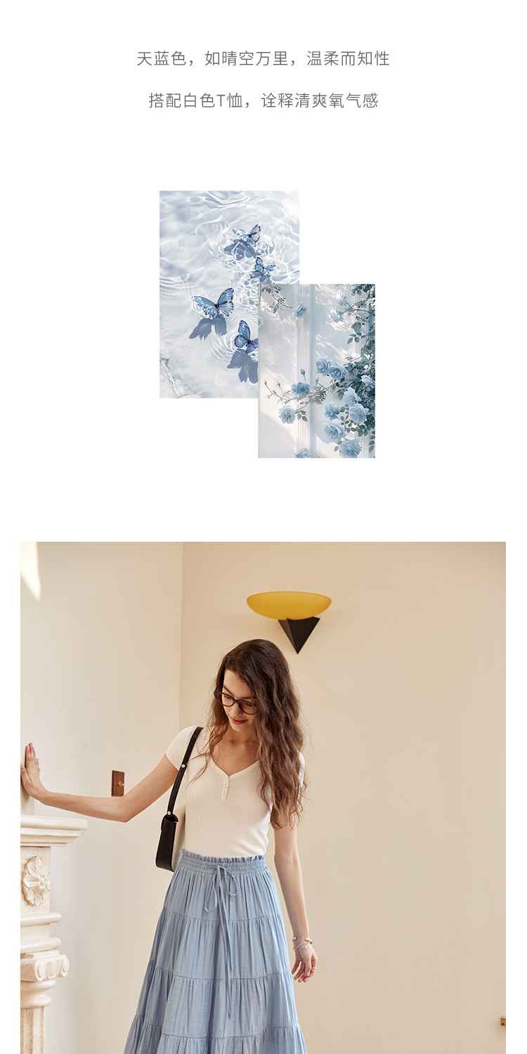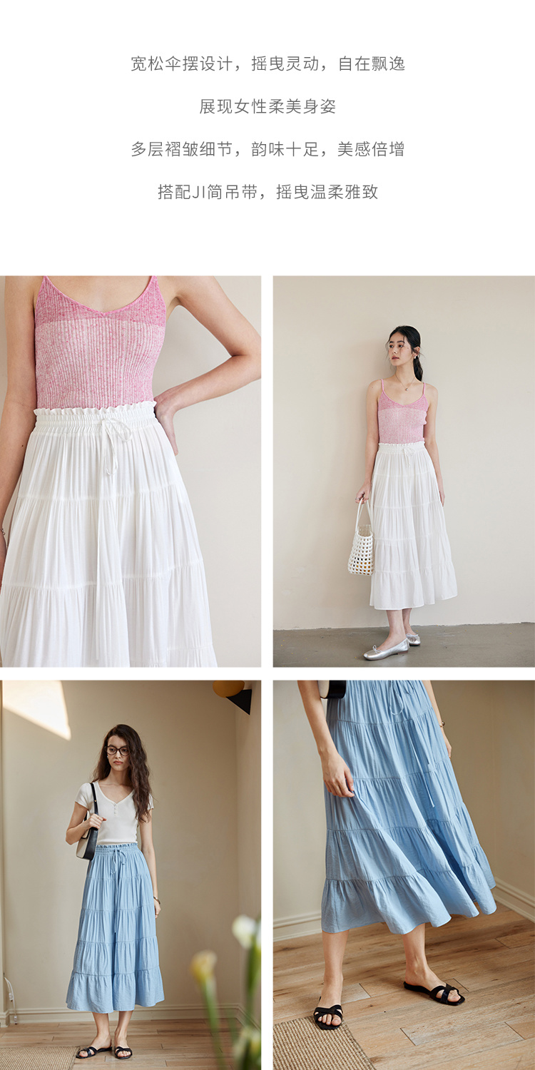 HeyDress花边半身裙女夏季法式高腰宽松A字半裙优雅浪漫感裙子