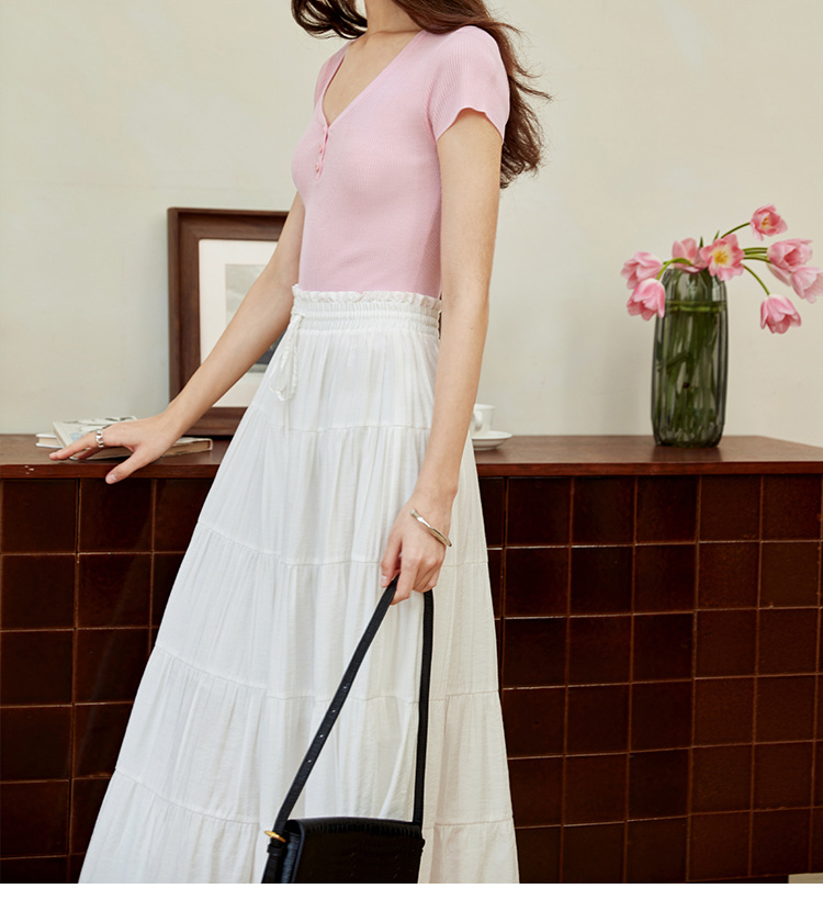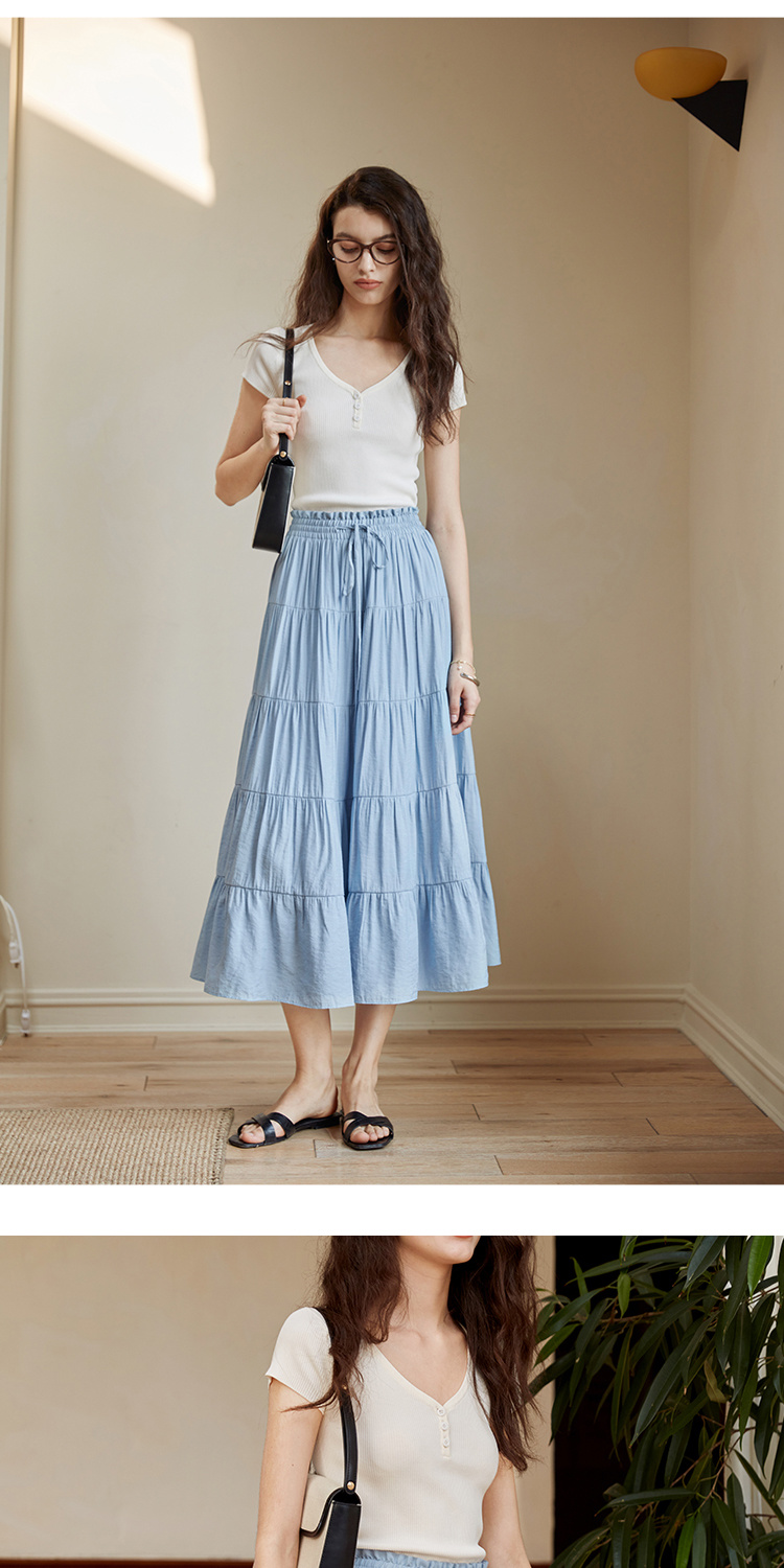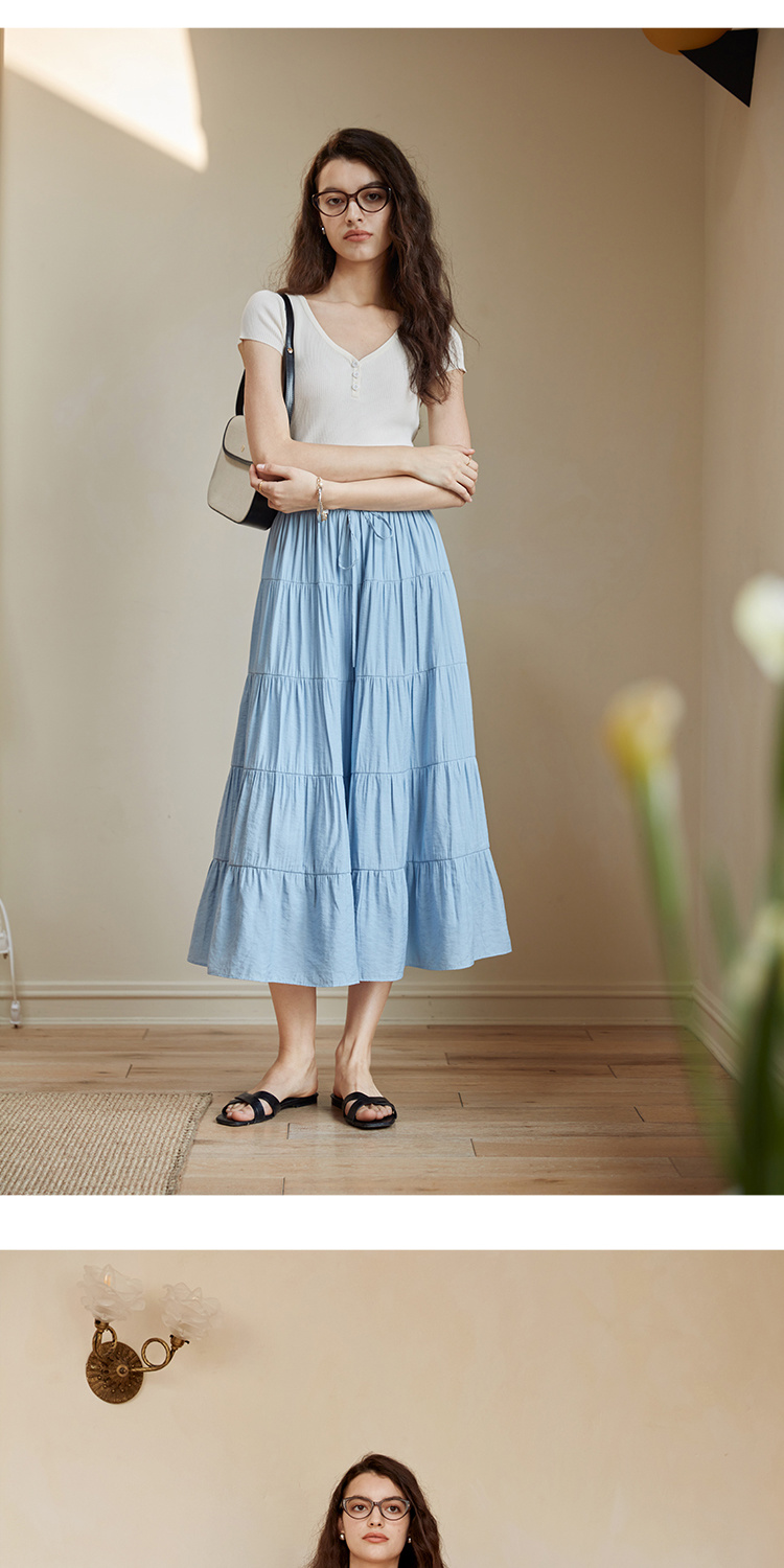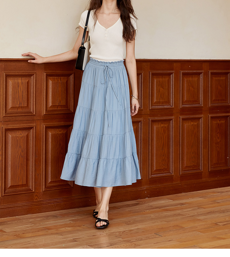 HeyDress花边半身裙女夏季法式高腰宽松A字半裙优雅浪漫感裙子