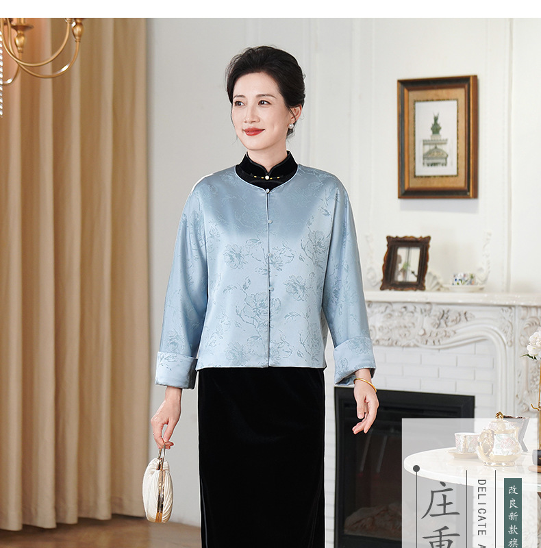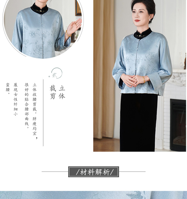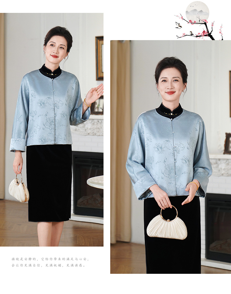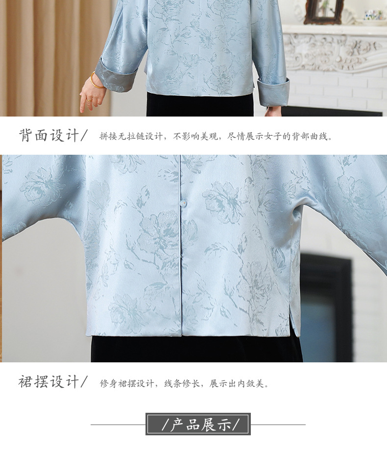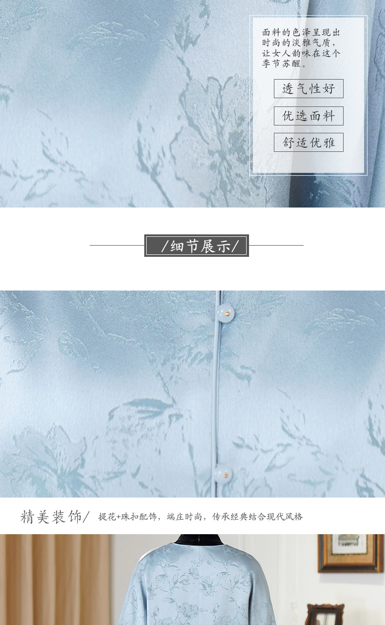 HYX新款新中式上衣宽松国风提花圆领女装气质醋酸百搭外套