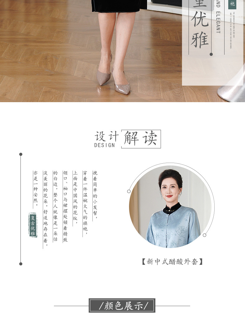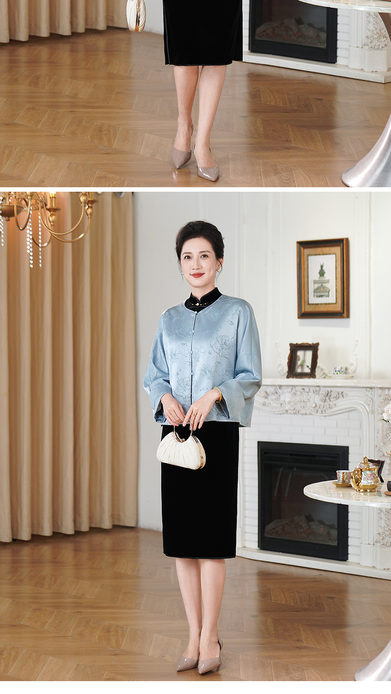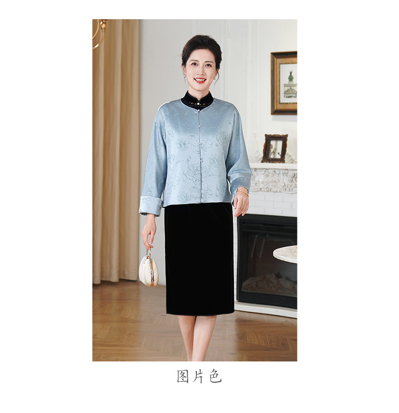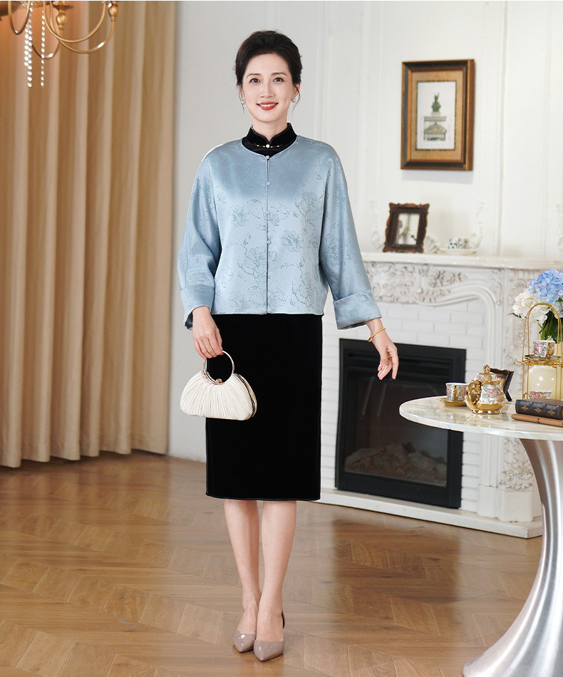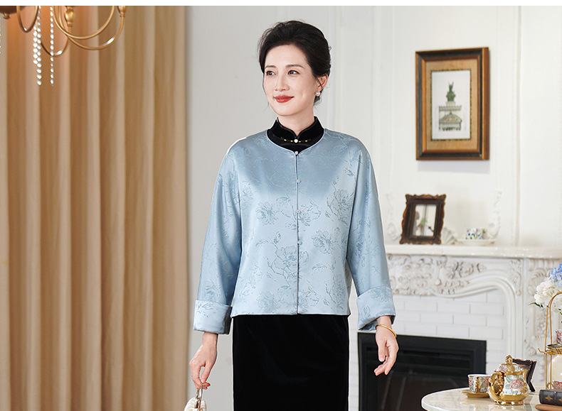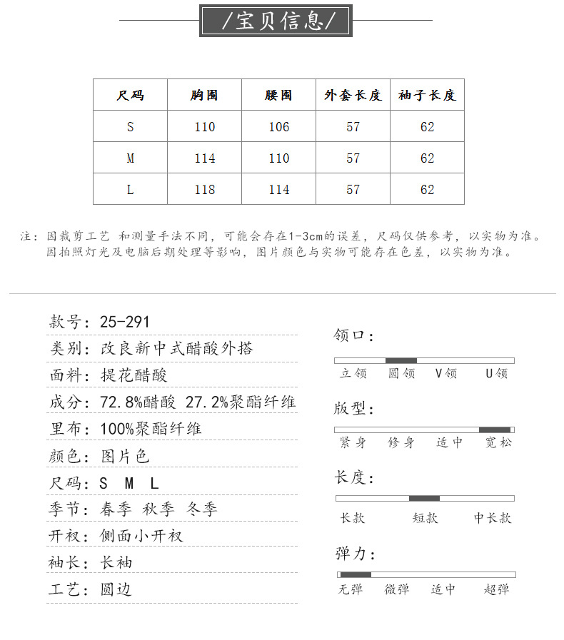 HYX新款新中式上衣宽松国风提花圆领女装气质醋酸百搭外套