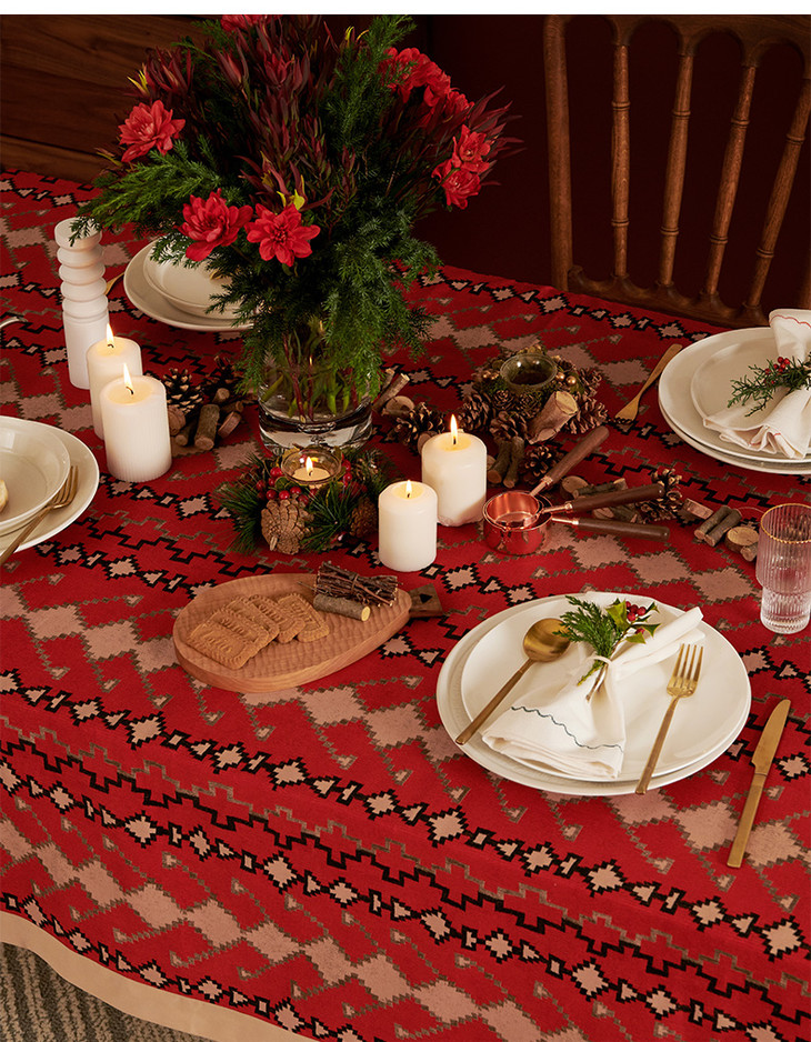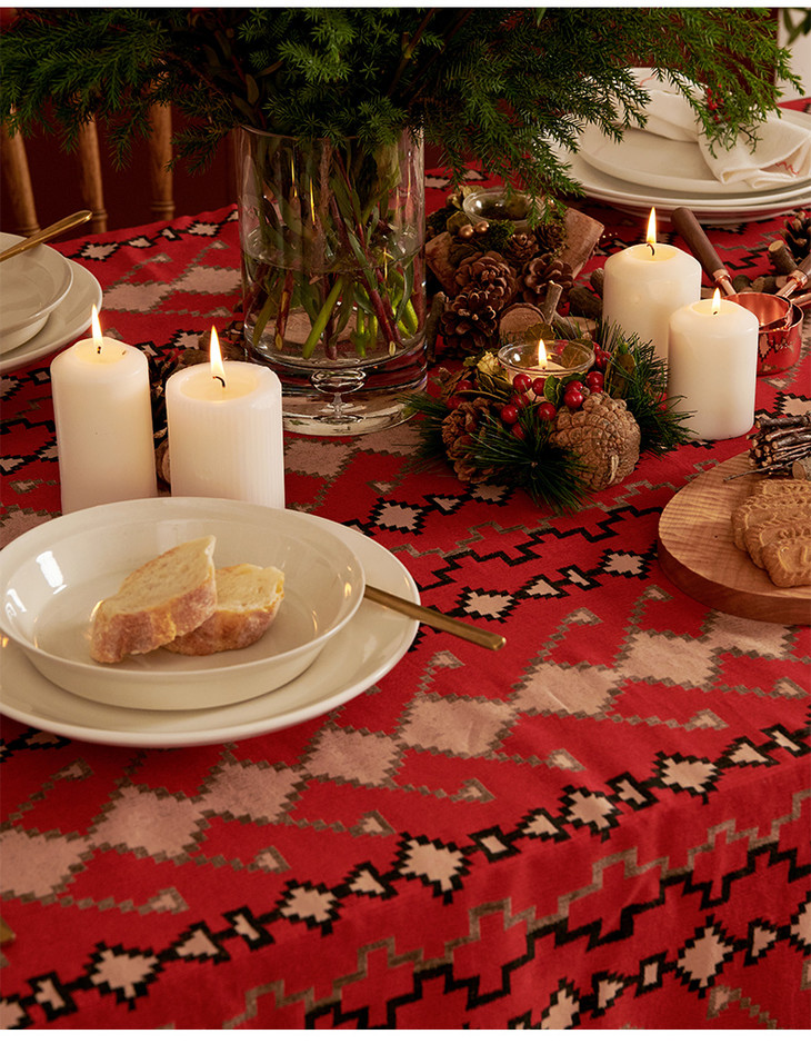 红色节日桌布新年圣诞装饰桌布餐桌布艺