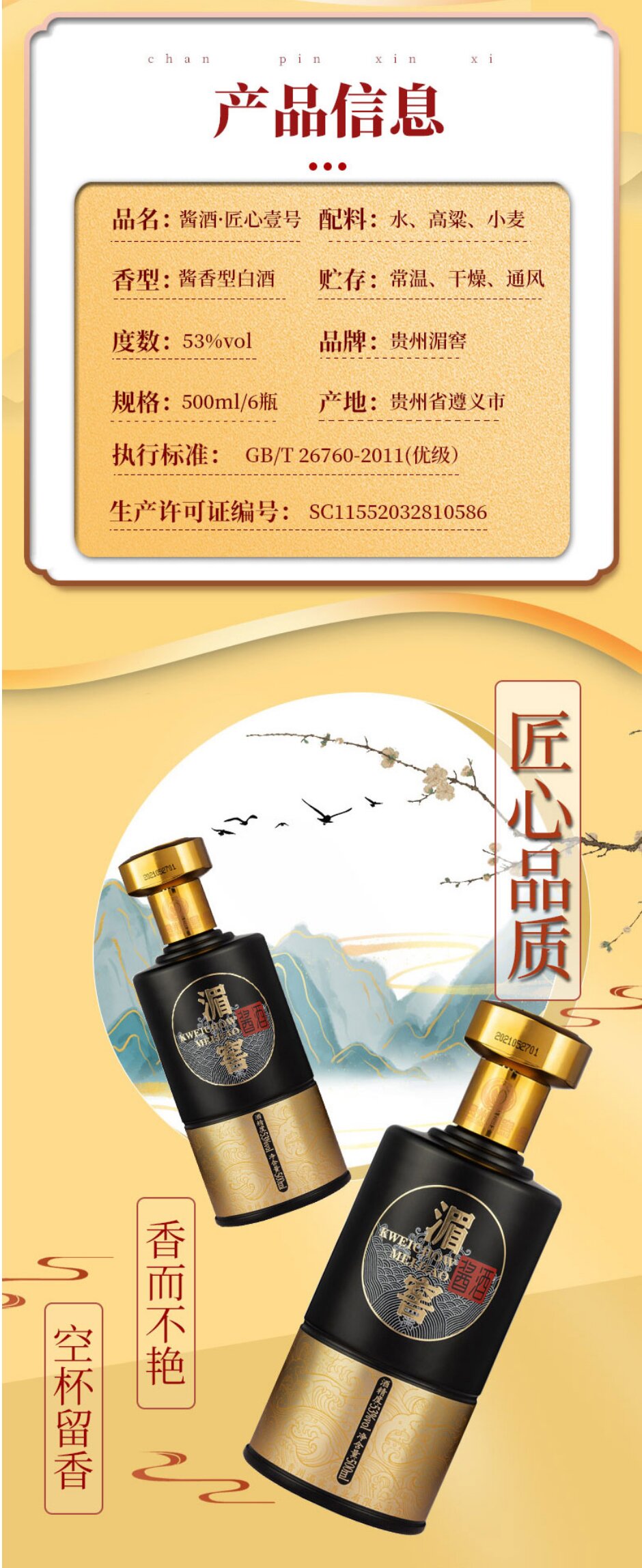 湄窖 匠心壹号 酱香型 53度 500ml*6瓶