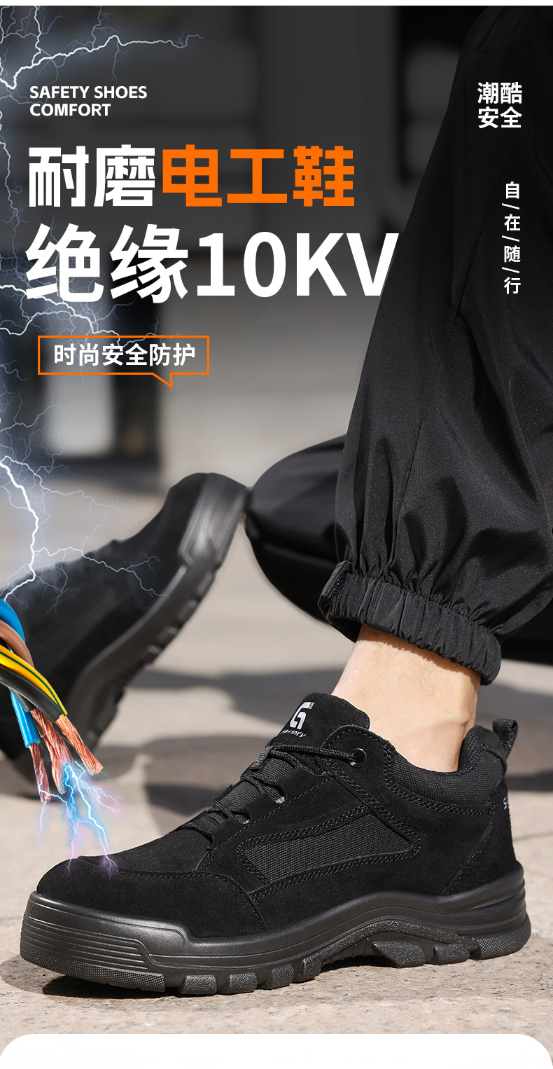 新品四季电工绝缘10KV焊工鞋反绒皮实心底耐磨防砸防刺 商品图1
