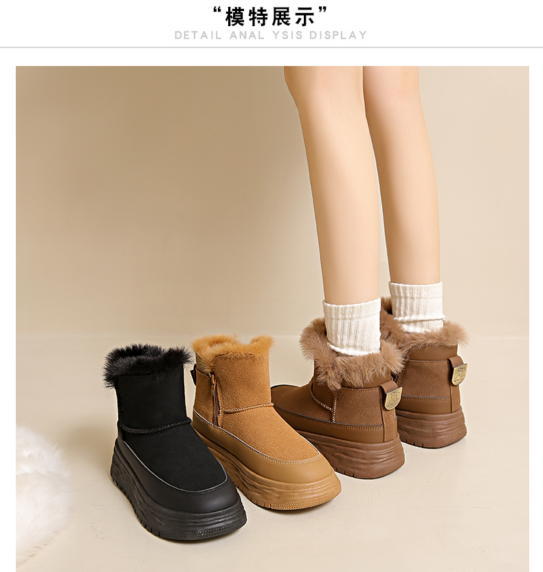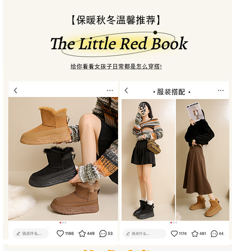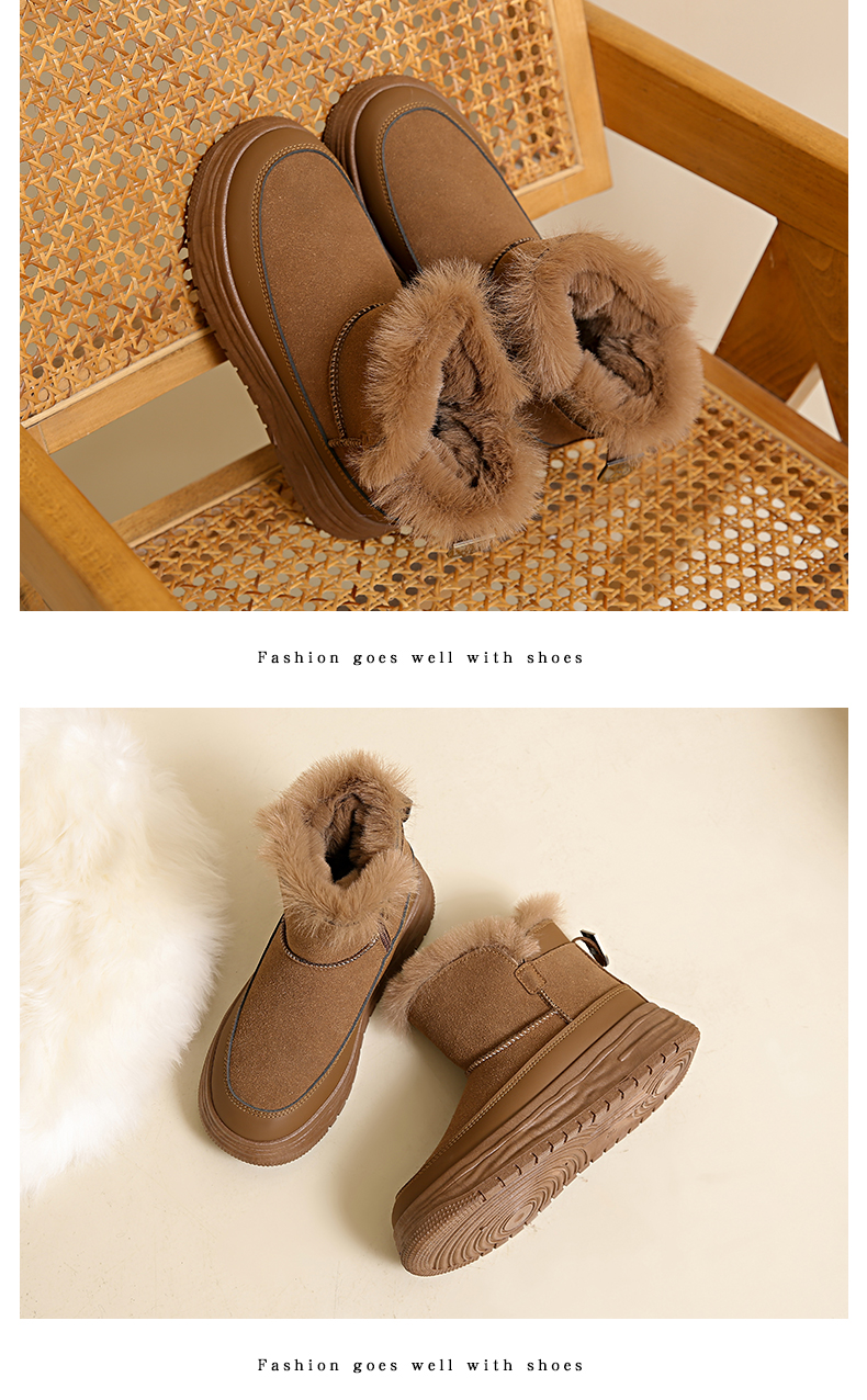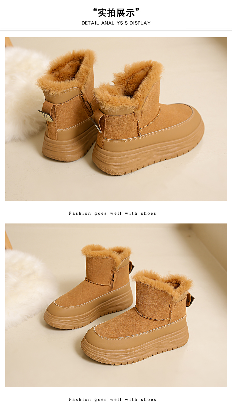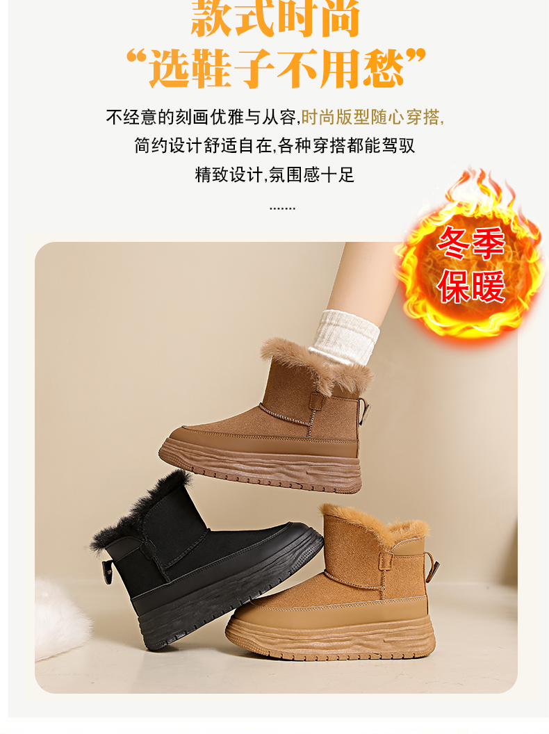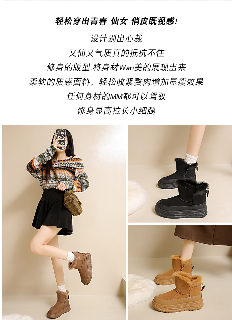 内里加绒!暖意融融!【板嫣&皮毛一体厚底雪地靴】承包冬日脚下风格 保暖+增高一部到位 4CM橡胶厚底 视觉增高 外圈磨砂皮质耐穿耐磨 温暖时髦双担