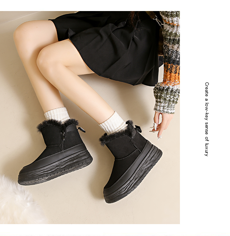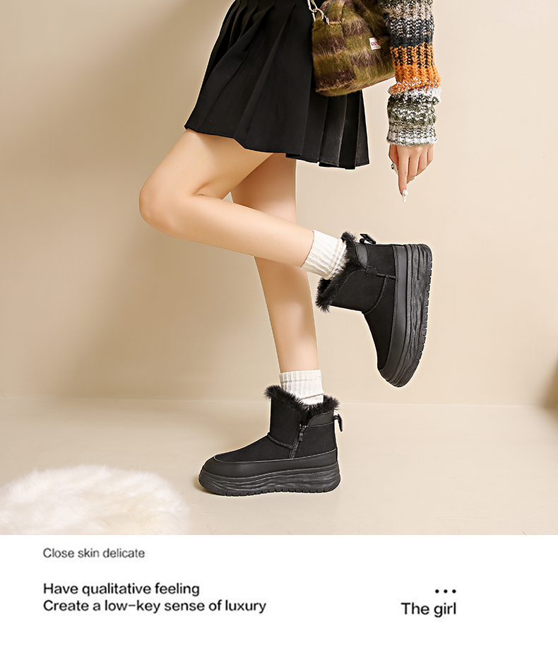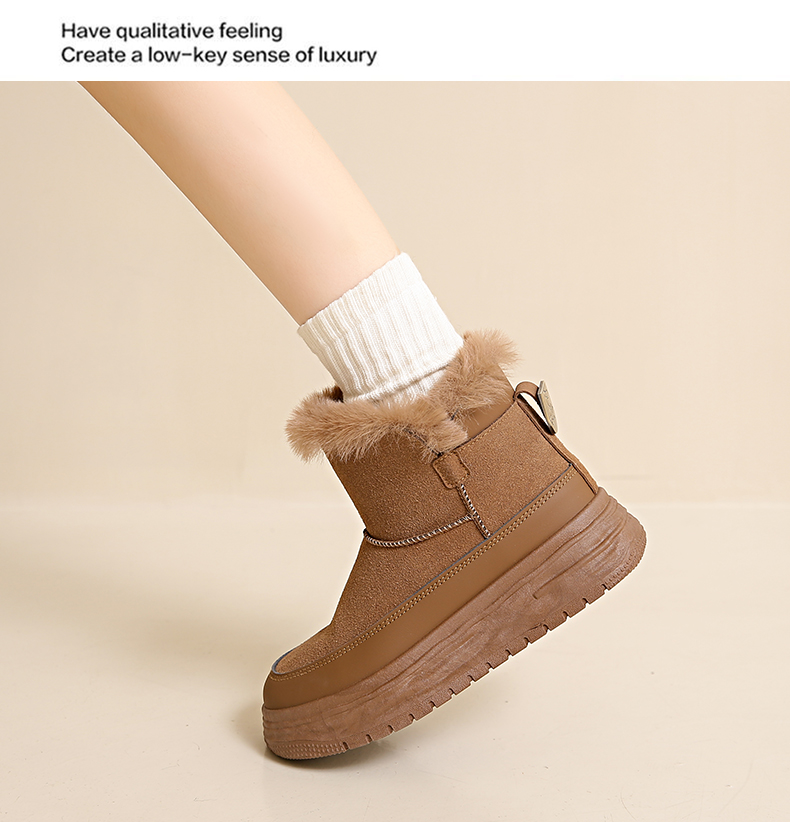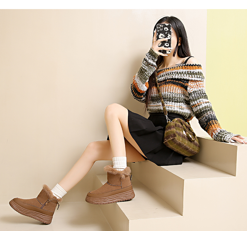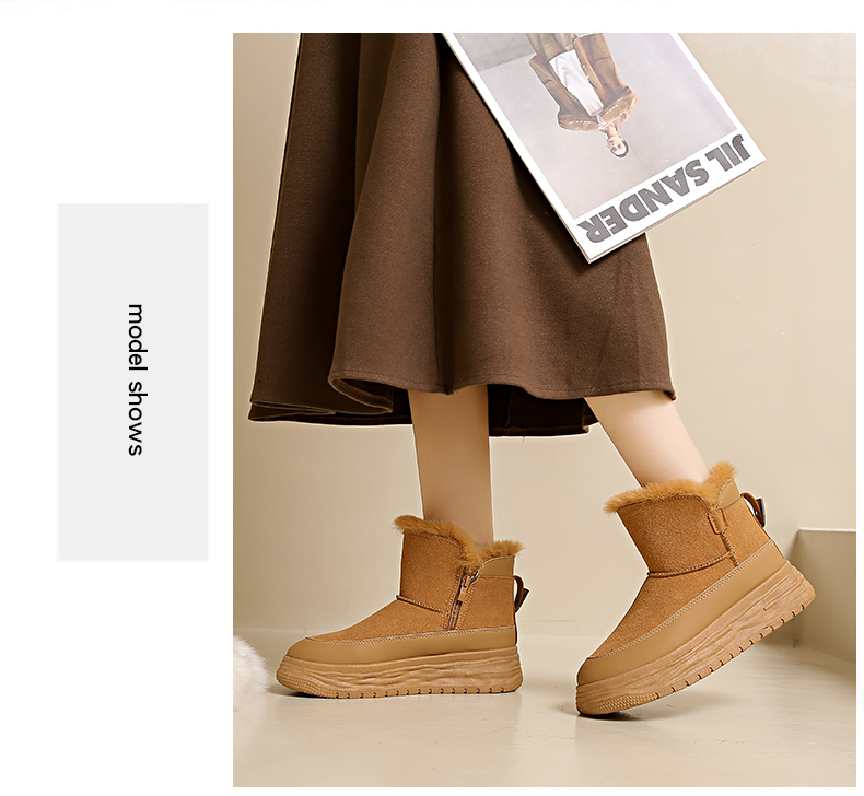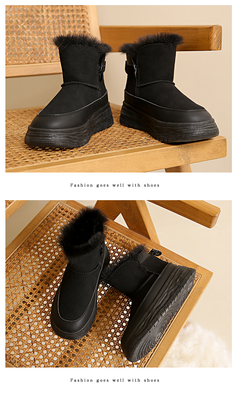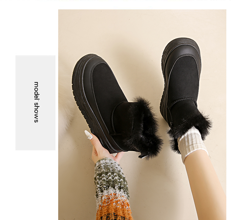 内里加绒!暖意融融!【板嫣&皮毛一体厚底雪地靴】承包冬日脚下风格 保暖+增高一部到位 4CM橡胶厚底 视觉增高 外圈磨砂皮质耐穿耐磨 温暖时髦双担