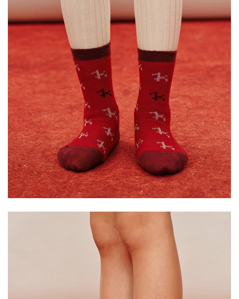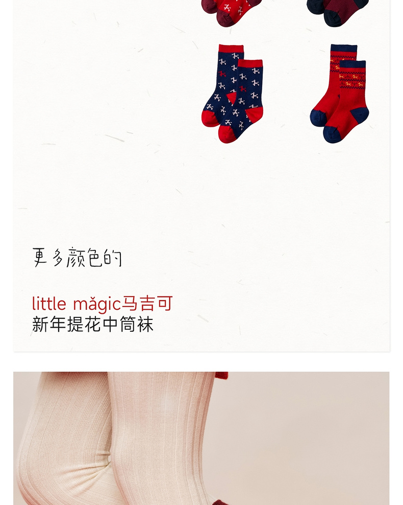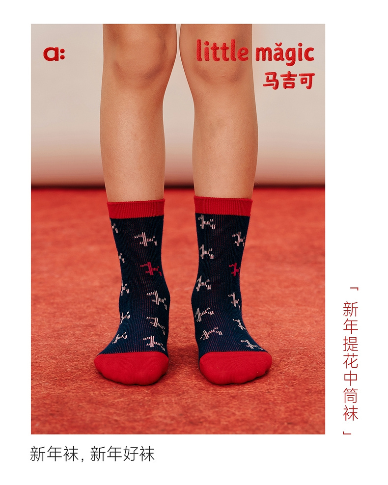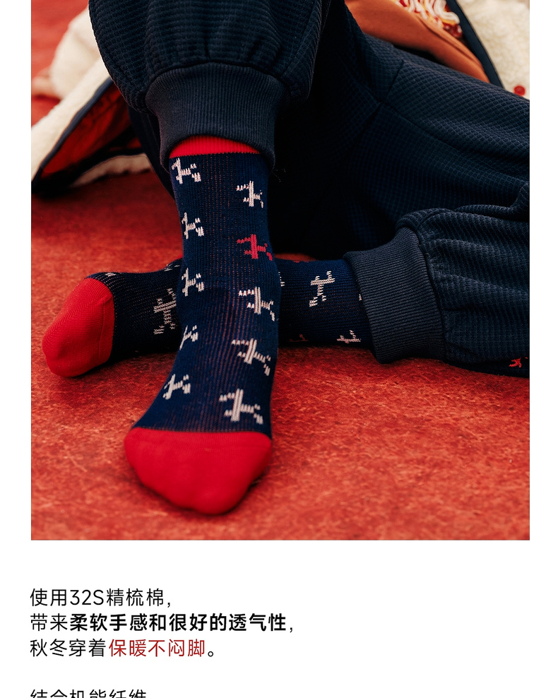 幼岚【新年提花中筒袜】儿童袜子26春季新品保暖透气亲肤舒适