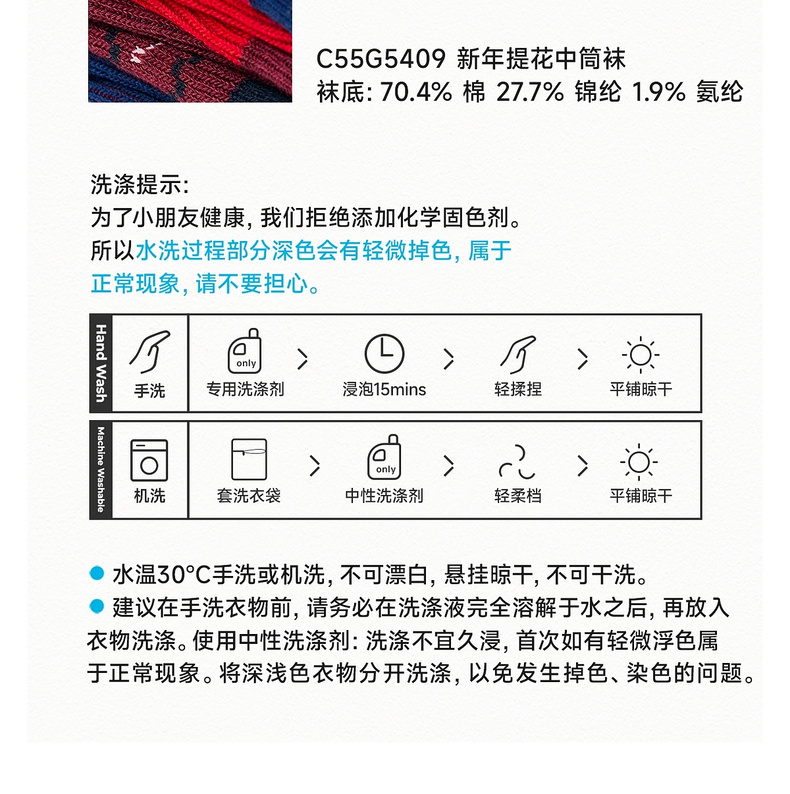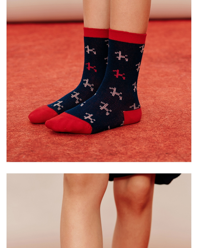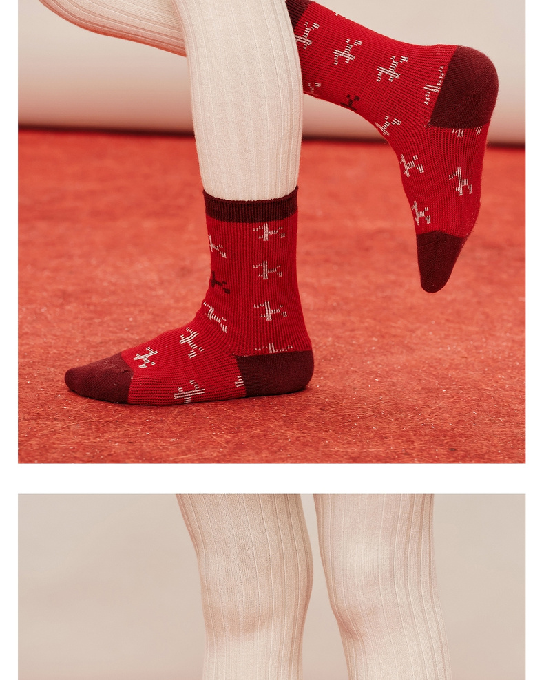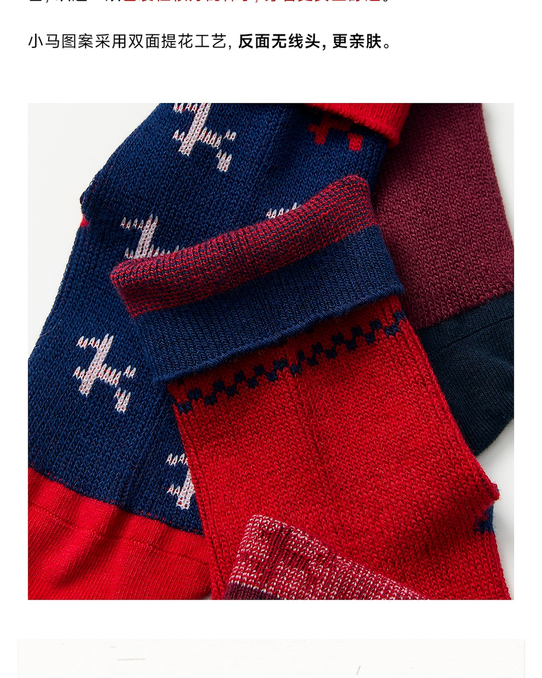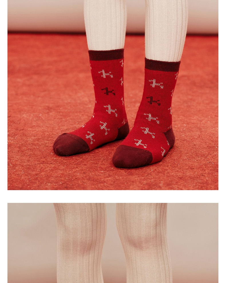 幼岚【新年提花中筒袜】儿童袜子26春季新品保暖透气亲肤舒适