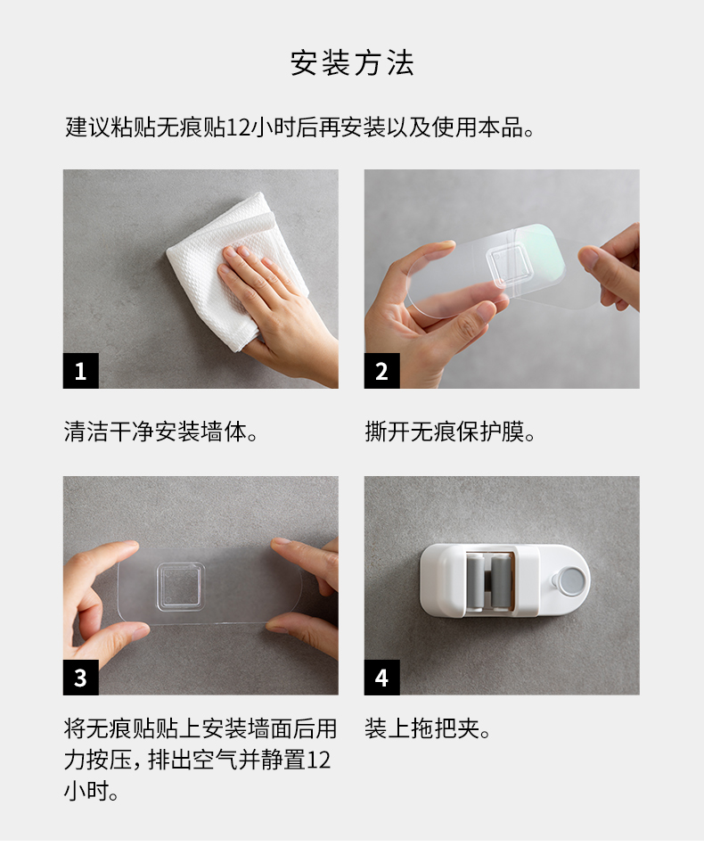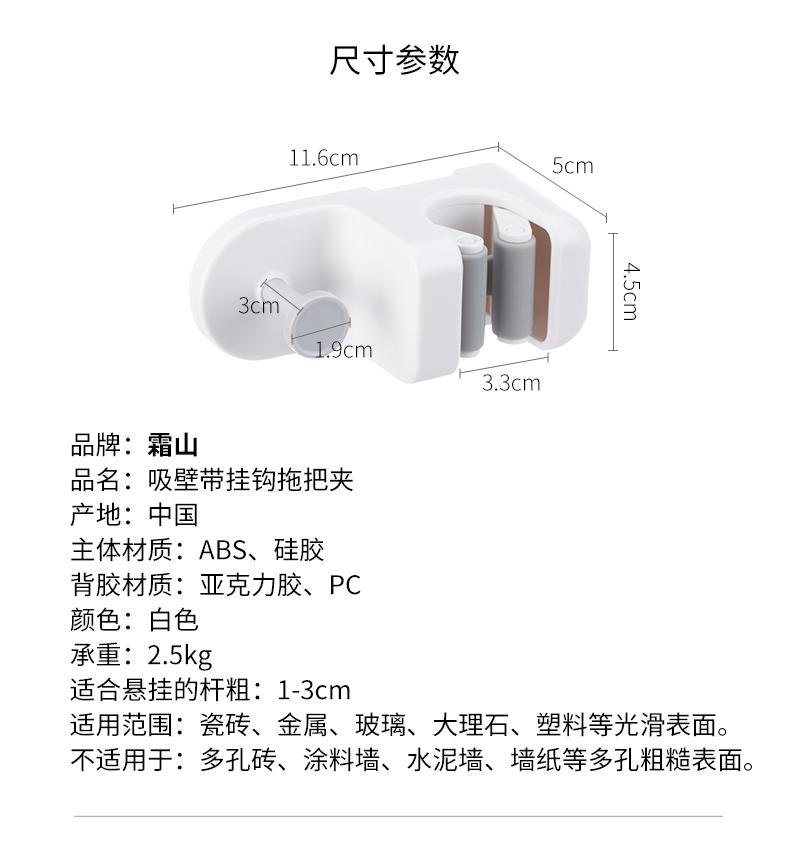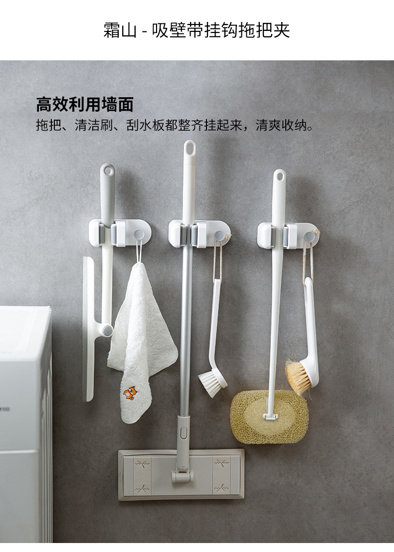 霜山拖把挂钩无痕免打孔家用卫生间浴室淋浴喷头花洒架吸壁扫把夹