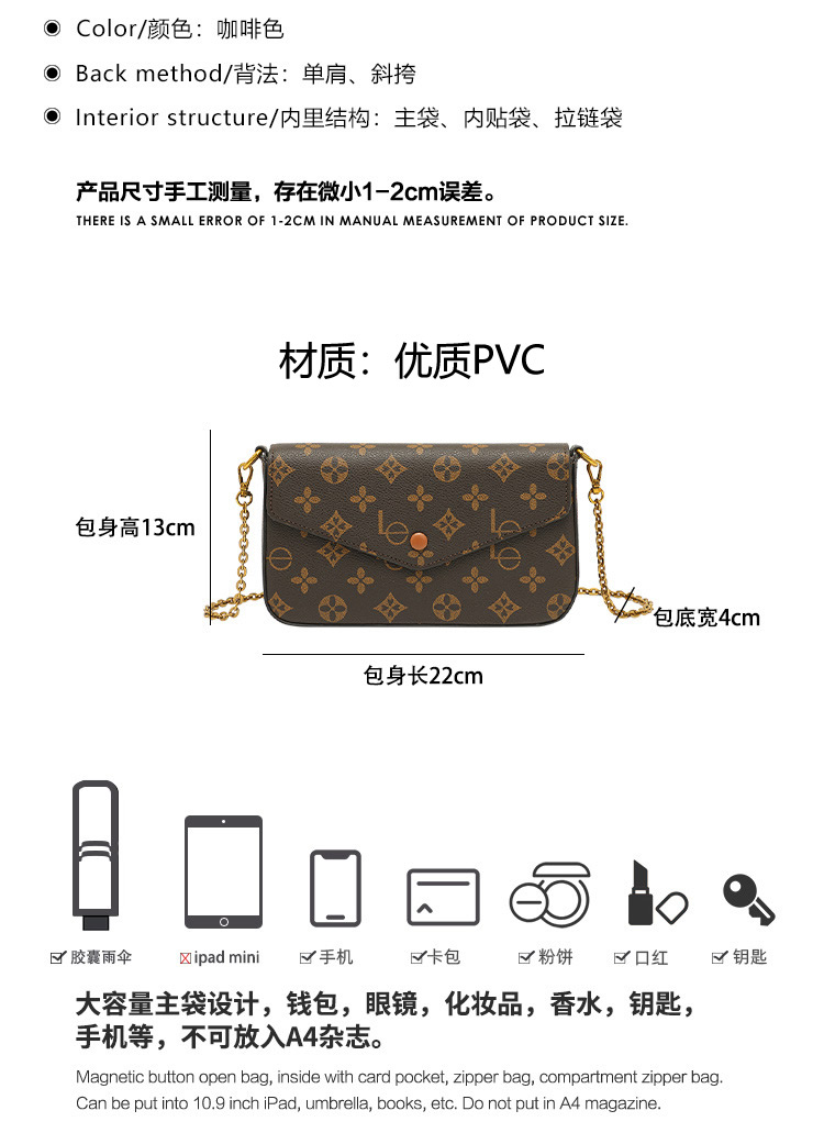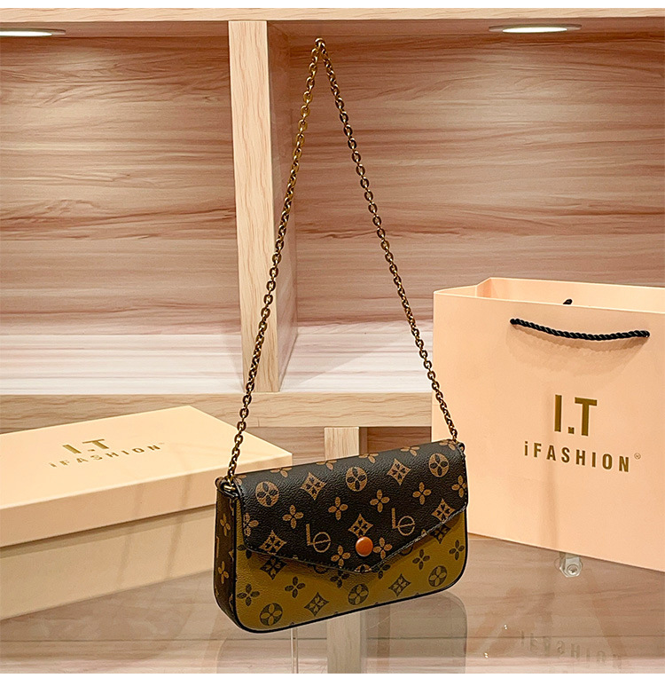 丁摩 信封包复古老花百搭高级感链条迷你斜挎小包女小方包5ZF-3172