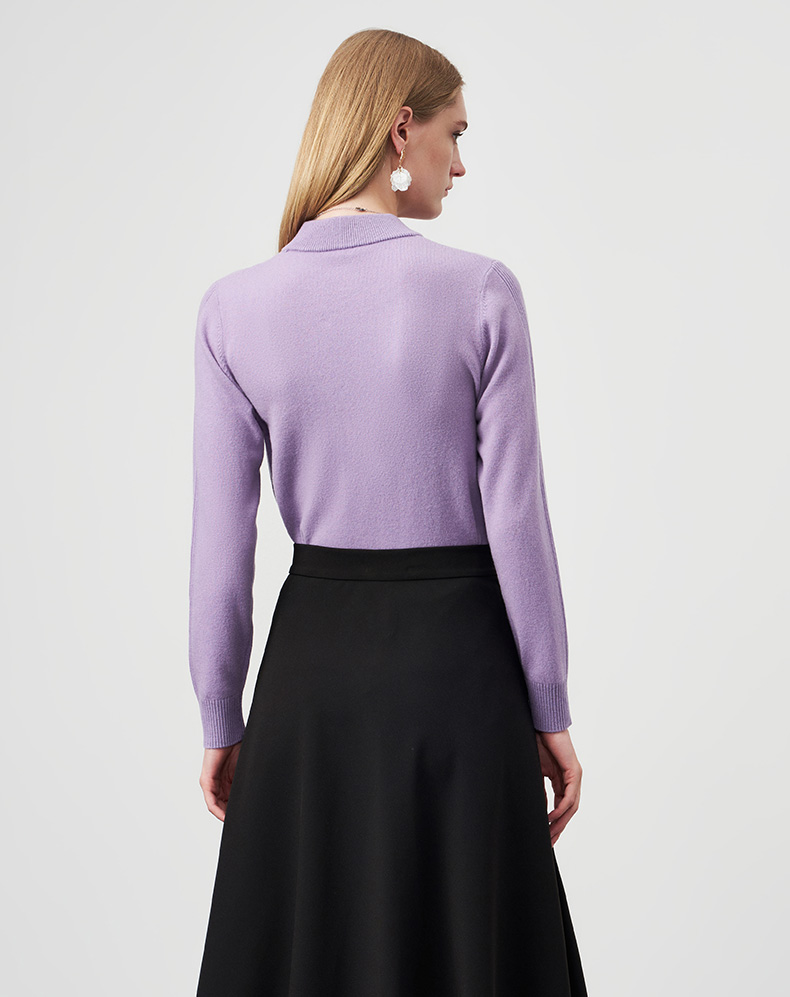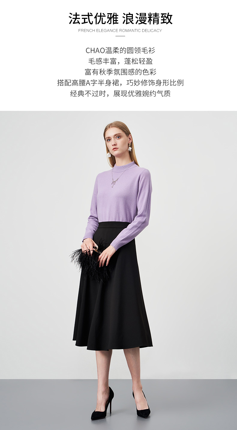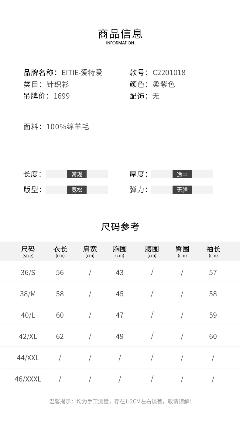 EITIE爱特爱秋季新款100%绵羊毛紫色温柔套头毛衣打底半高领舒适针织衫C2201018