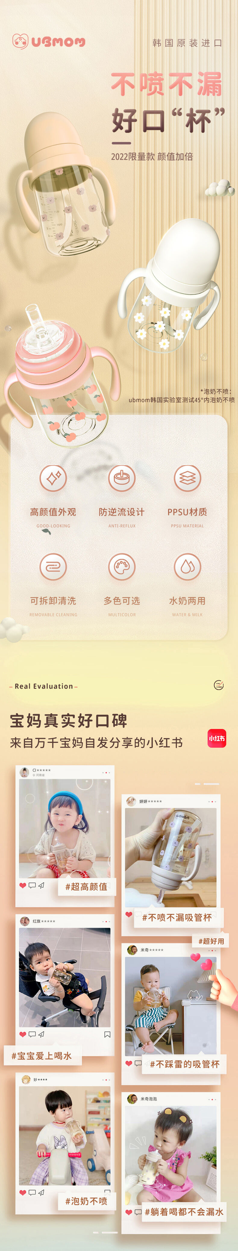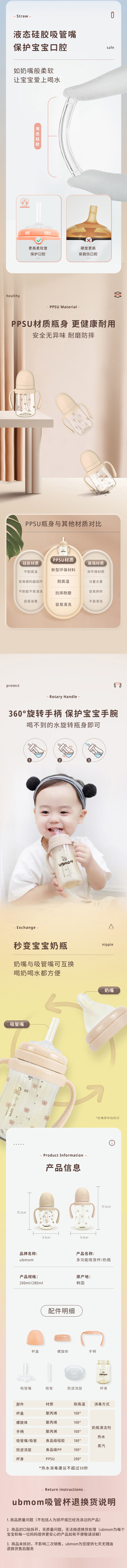 韩国ubmom宝宝吸管杯喝奶瓶婴儿学饮水杯儿童6个月以上