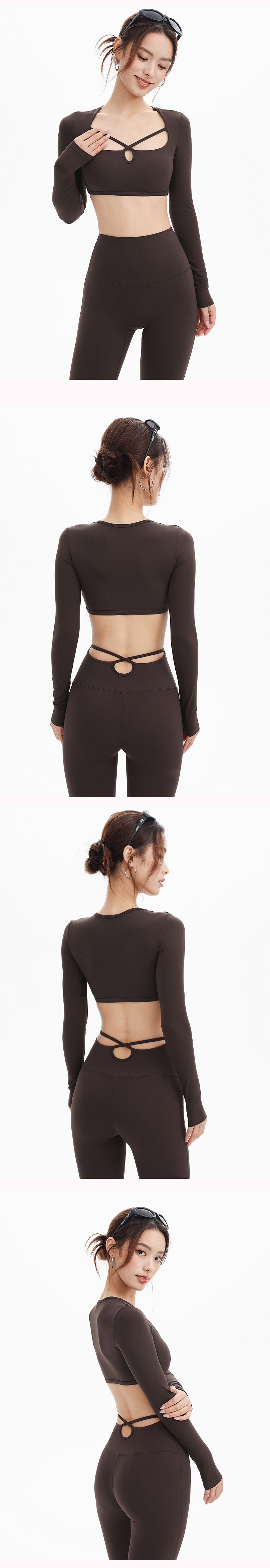 跃牌【禅语梵心】秋冬方领镂空长袖瑜伽服速干休闲上衣训练跑步运动健身服CX5546