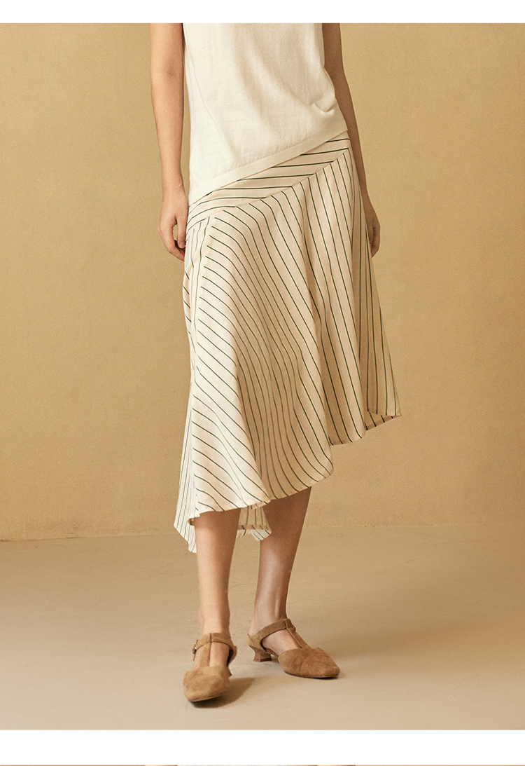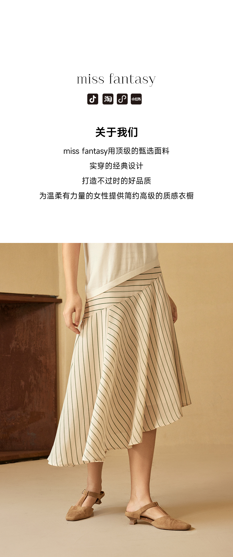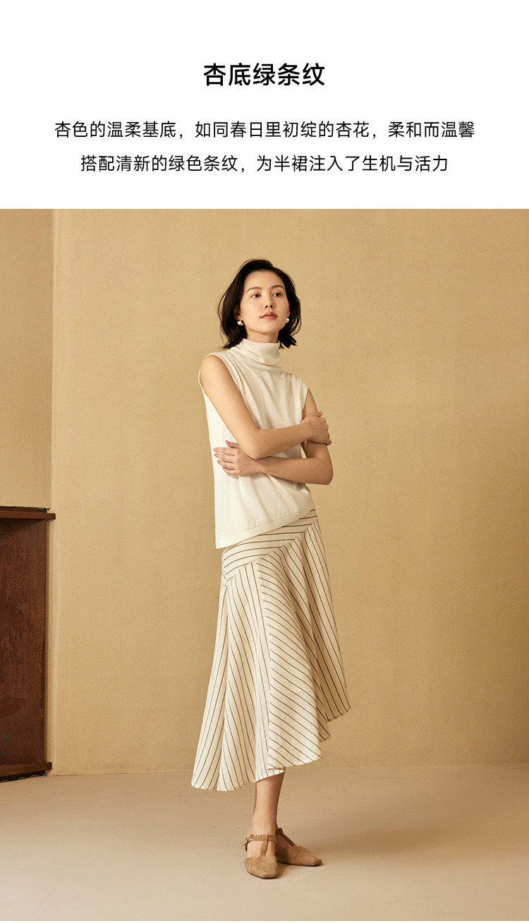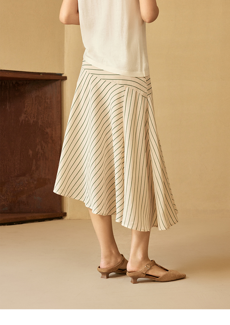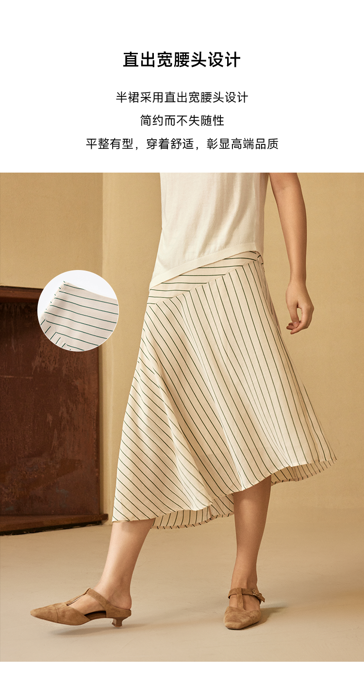 色织条纹拼接A字修身迷笛半裙FCE3SKT208