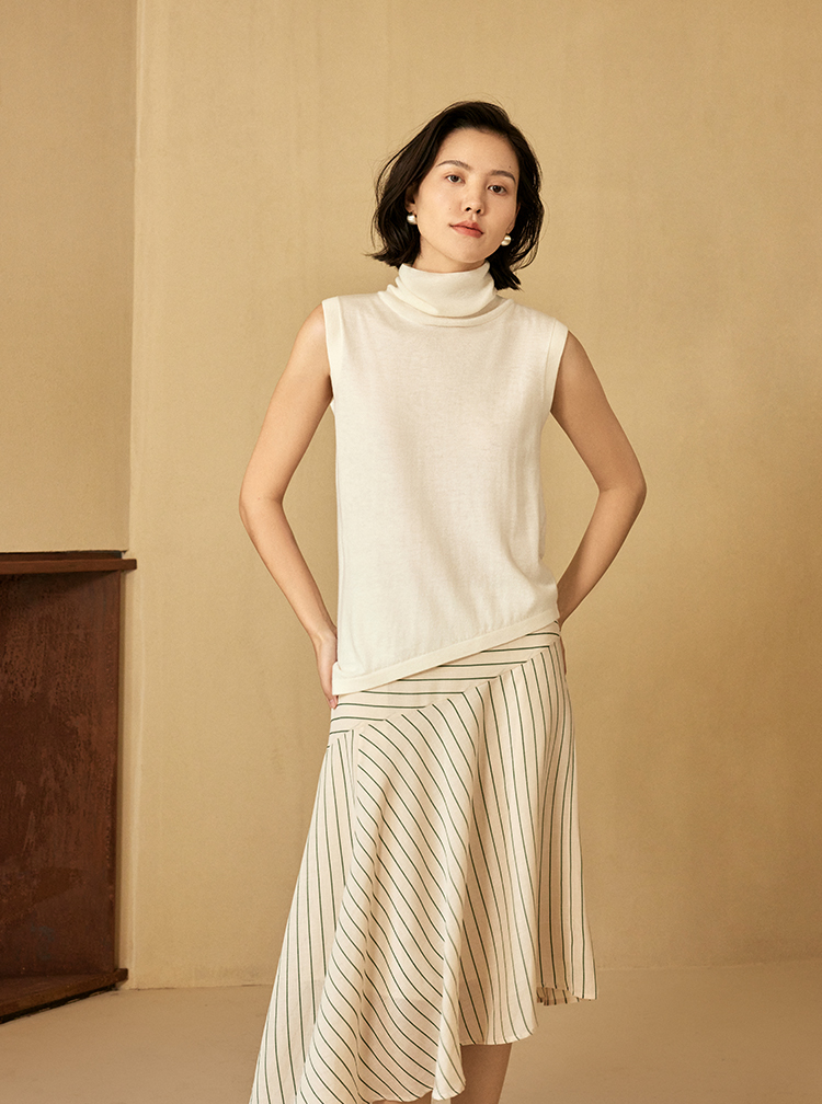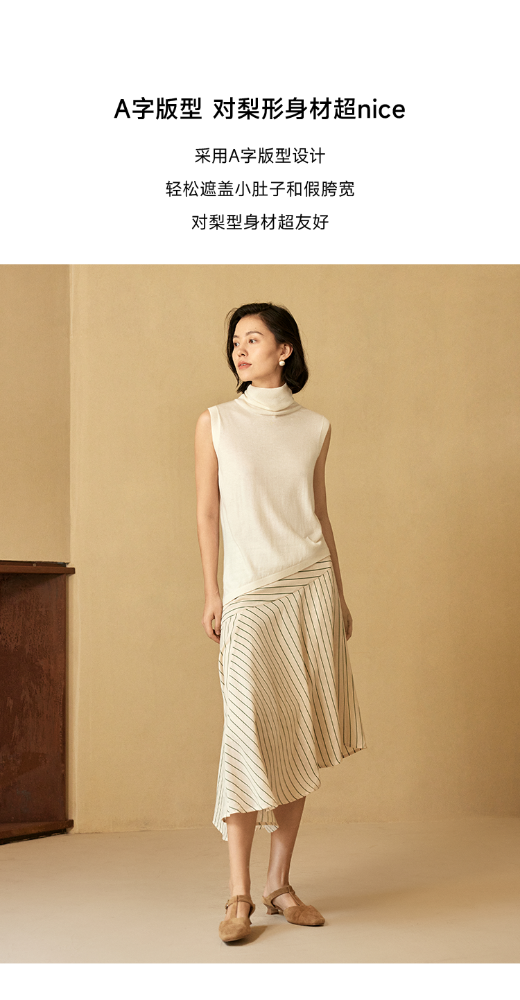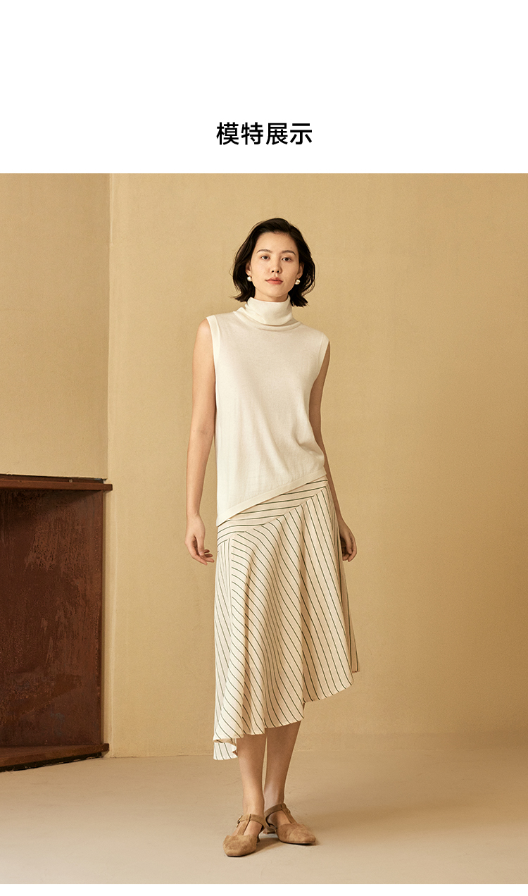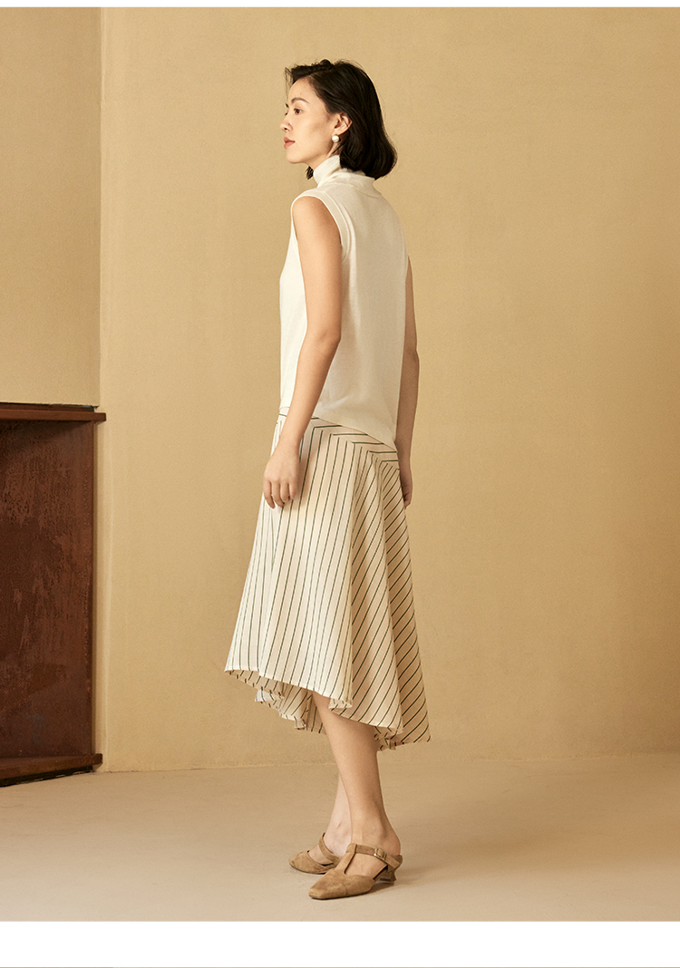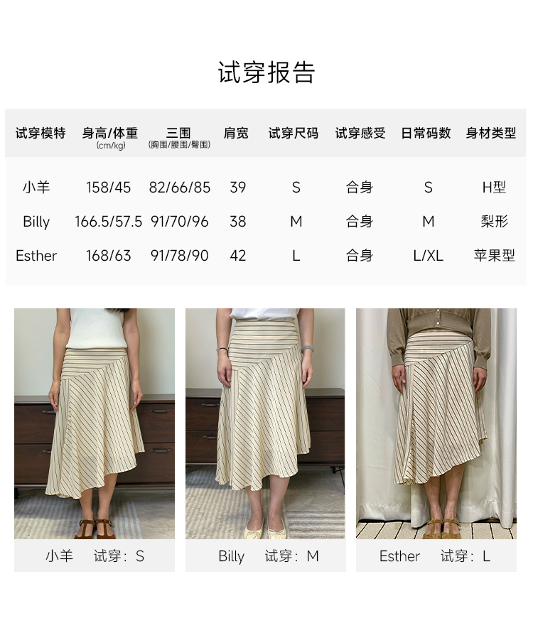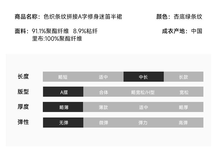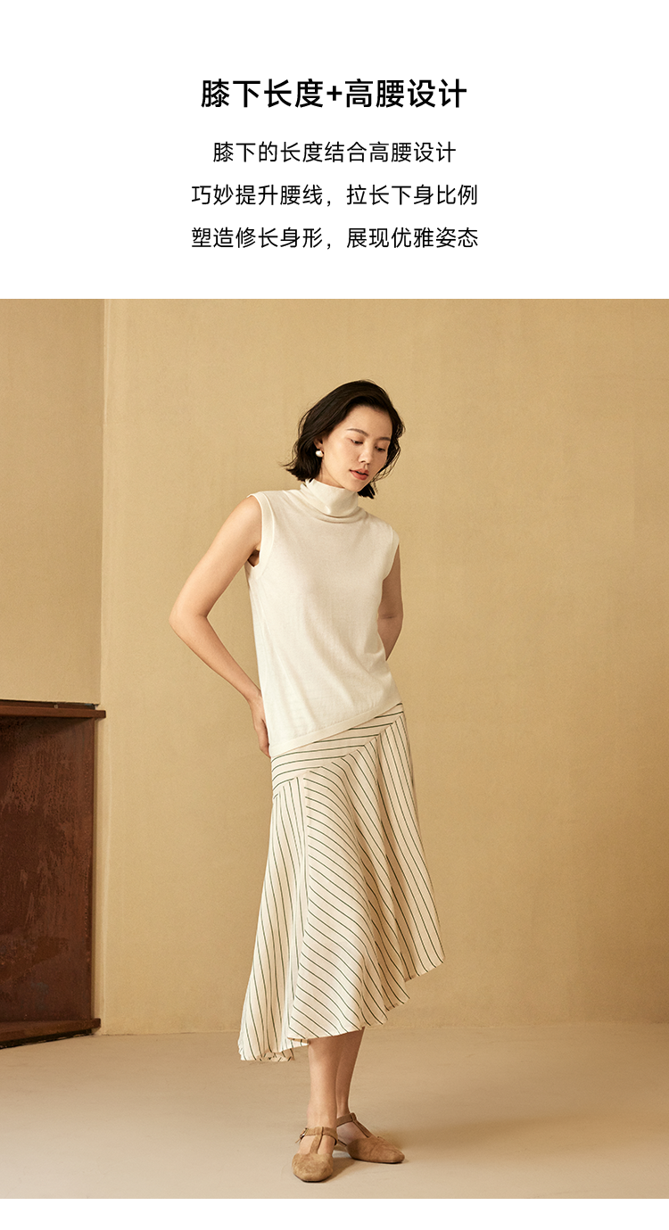 色织条纹拼接A字修身迷笛半裙FCE3SKT208
