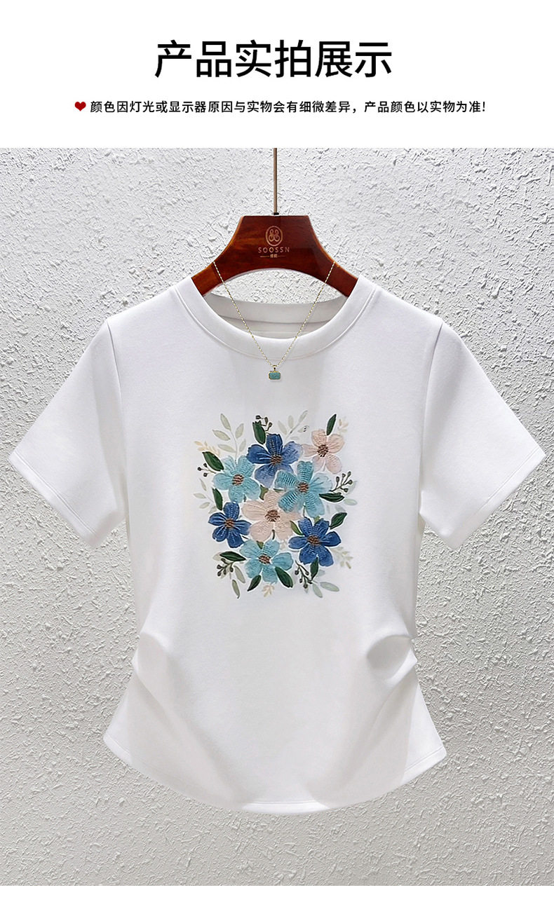 白色圆领T恤衫女短袖棉上衣重工刺绣花复古显瘦设计百搭夏季   BY-M824 商品图3