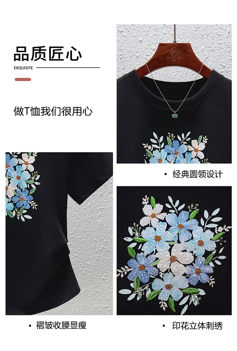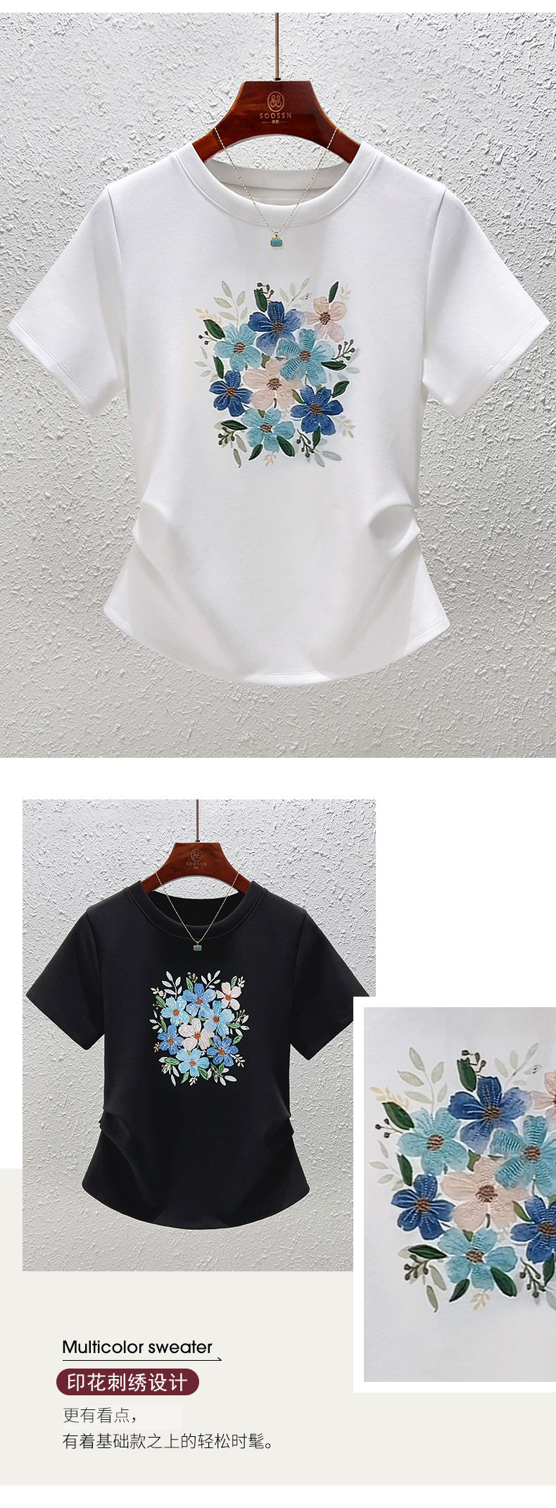 白色圆领T恤衫女短袖棉上衣重工刺绣花复古显瘦设计百搭夏季   BY-M824 商品图2