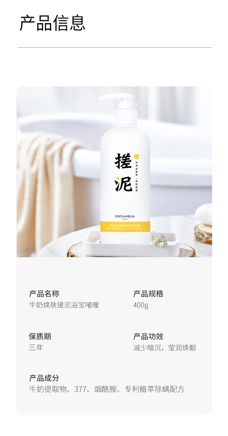 【夏天的浴室必须有它】牛奶烟酰胺搓泥宝专利除螨啫喱清洁去角质死皮不沾体毛男女全身通用