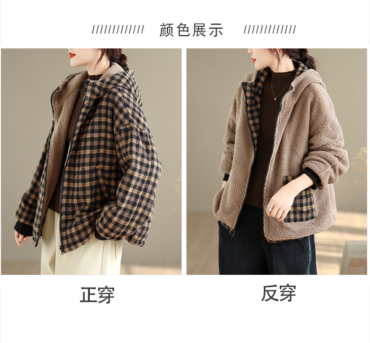 A8639-1 2025年冬季新款加绒加厚双面穿洋气休闲百搭显瘦减龄棉服时尚外套