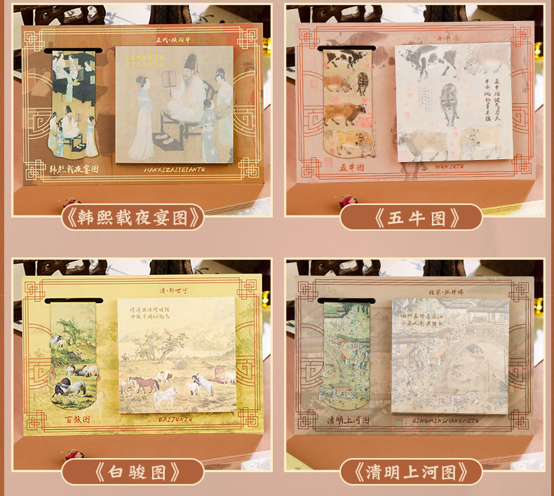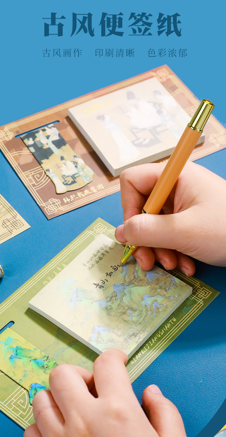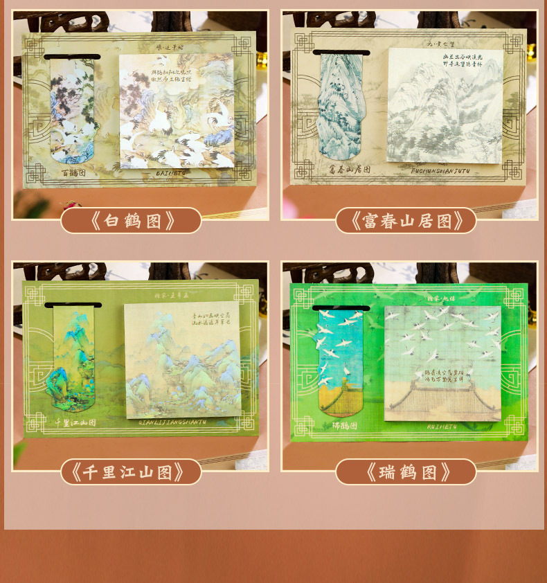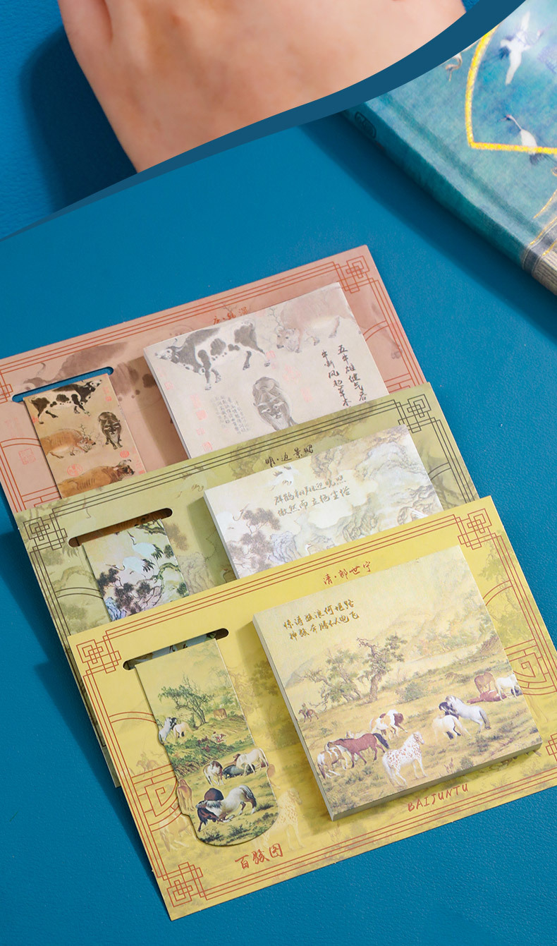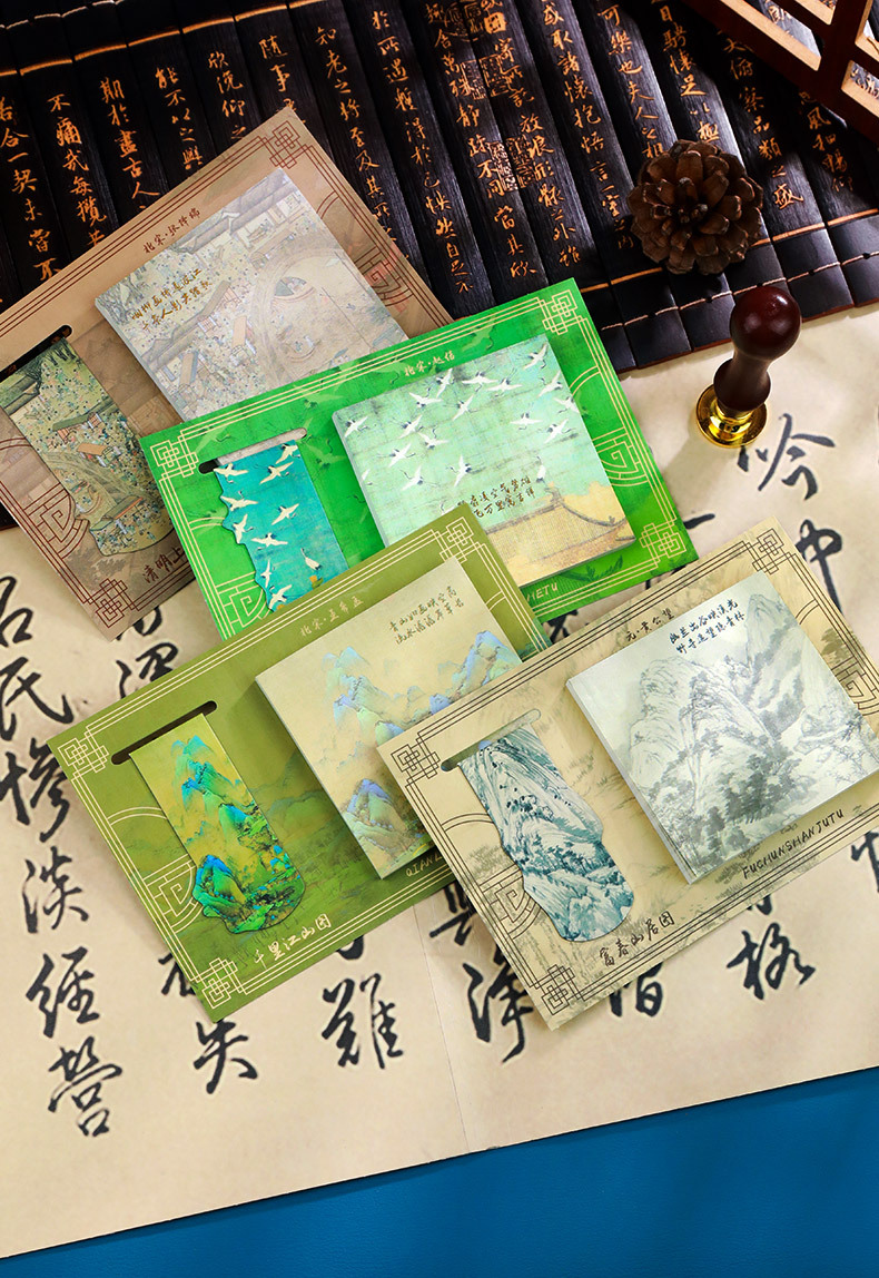 【名画书签+便签贴套装】千里江山图瑞鹤图国风励志便利贴便签纸可粘便签贴