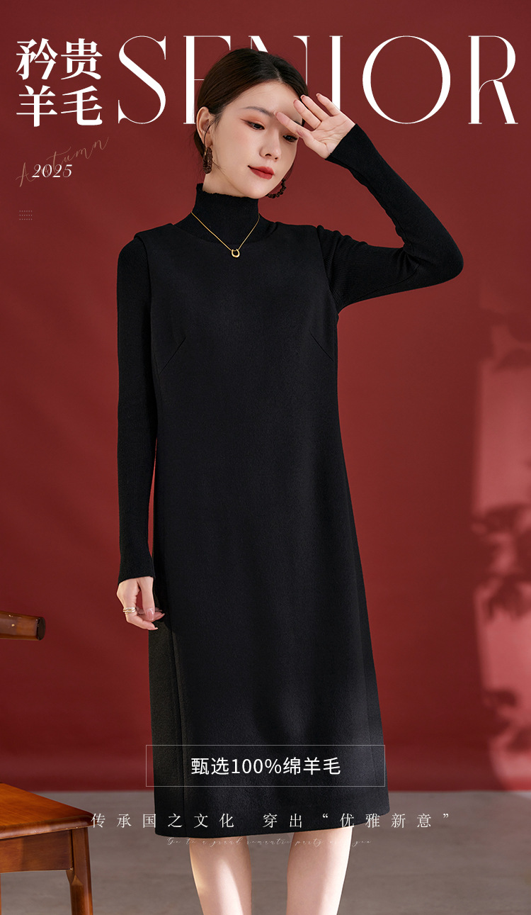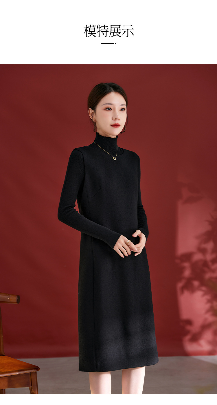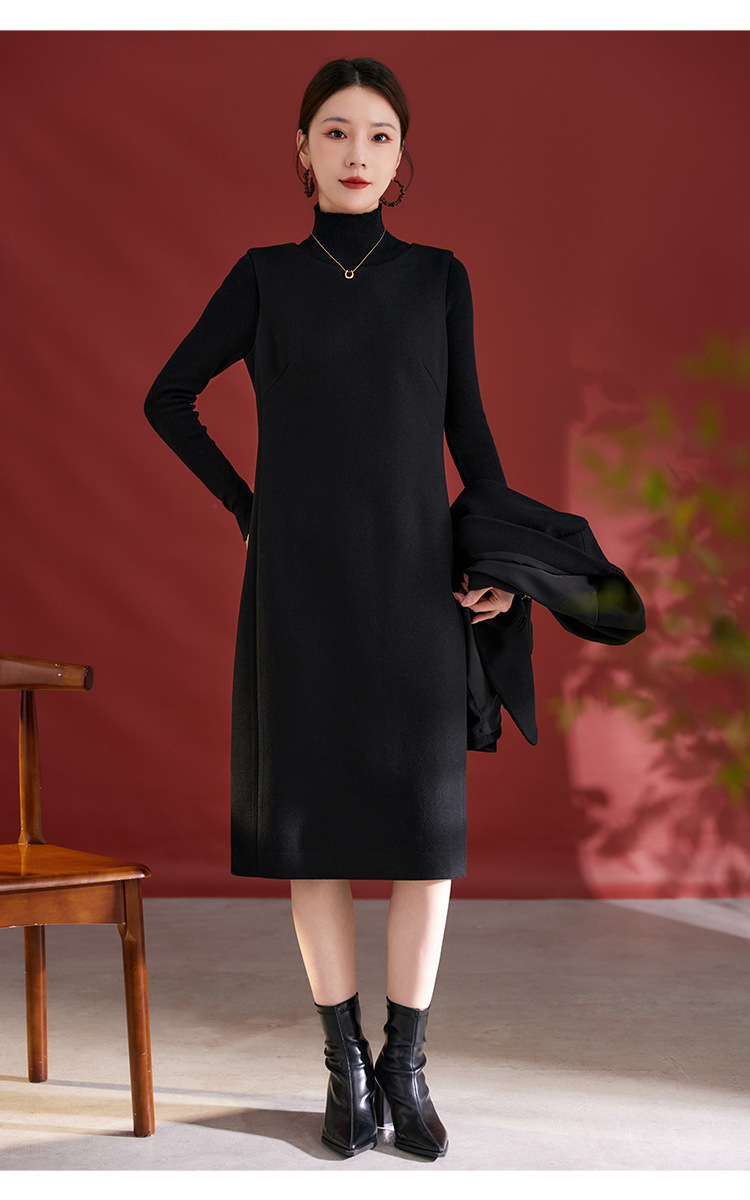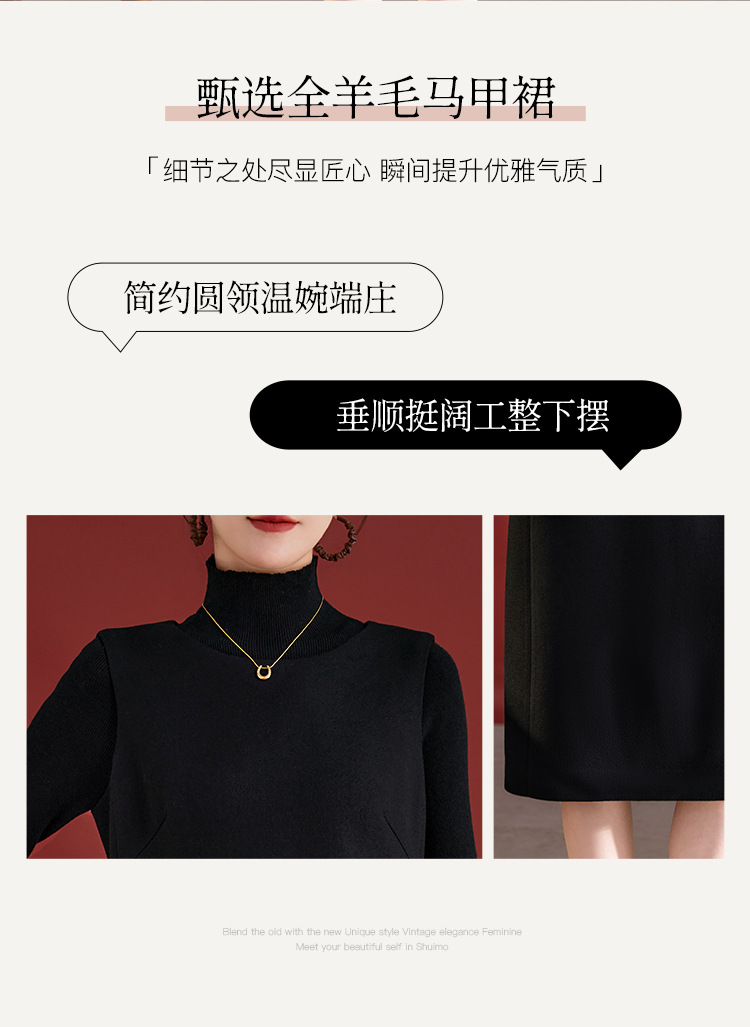 QS羊毛无袖连衣裙女秋冬新款气质纯色日常气质百搭裙子2753