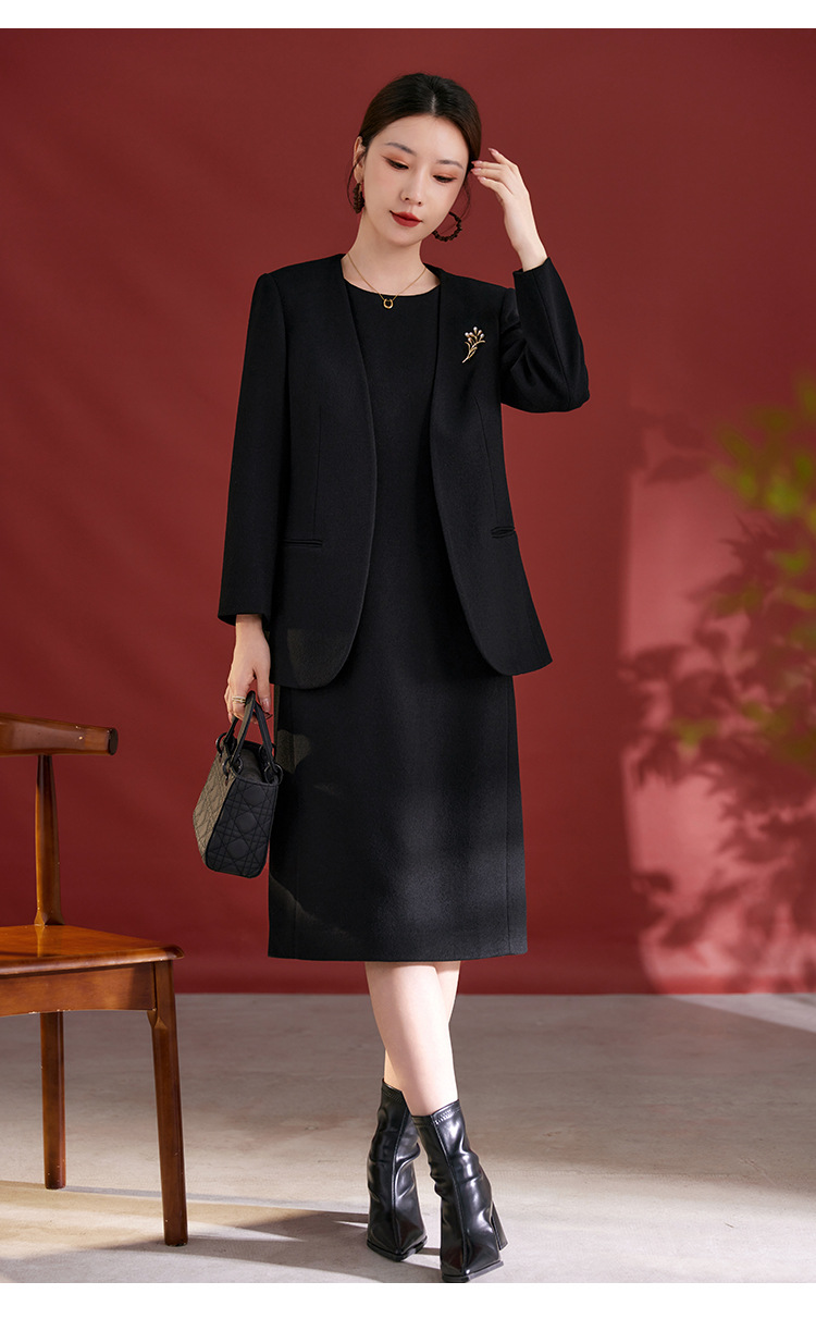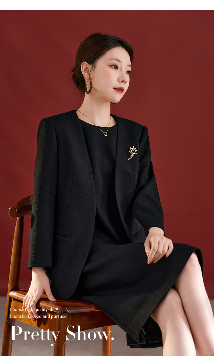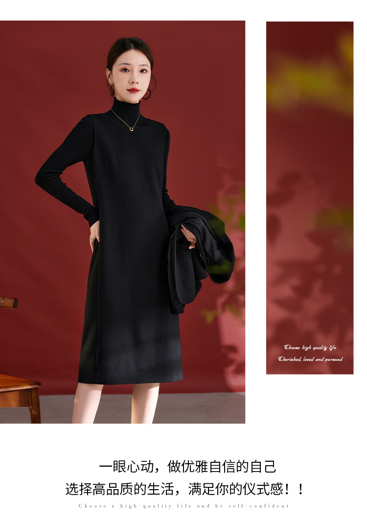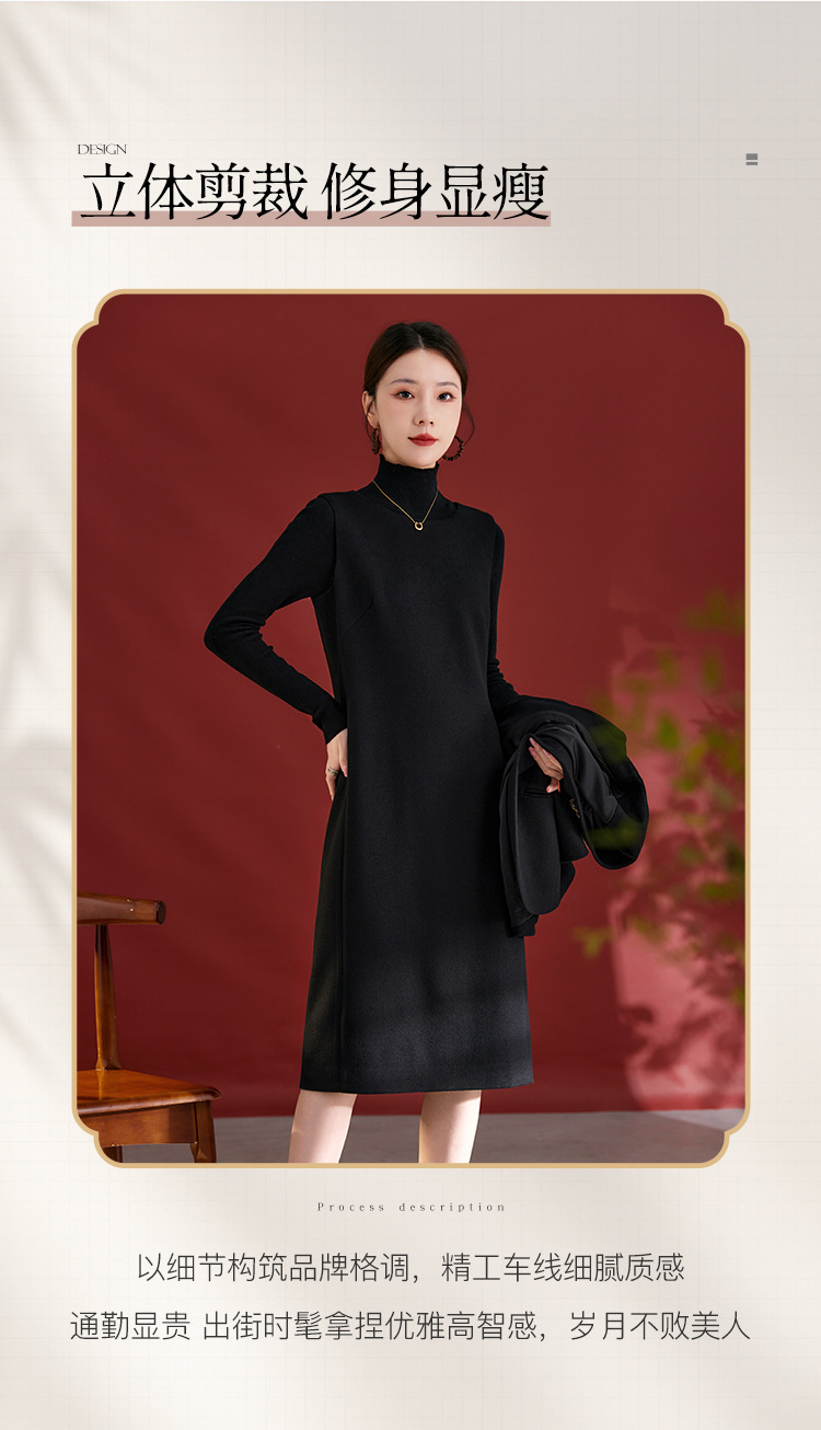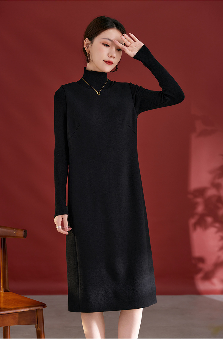 QS羊毛无袖连衣裙女秋冬新款气质纯色日常气质百搭裙子2753