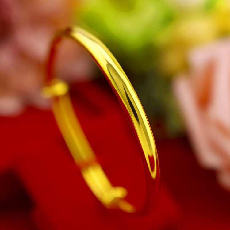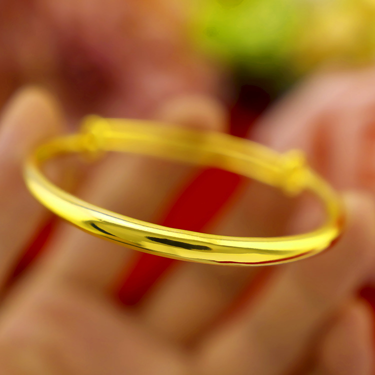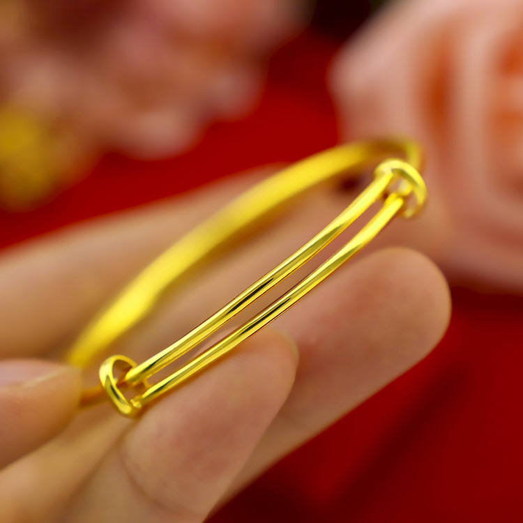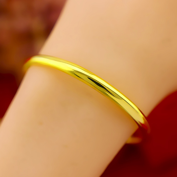 泰国金不掉色光面圆棍推拉手镯 重约20克 粗5mm 直径58mm