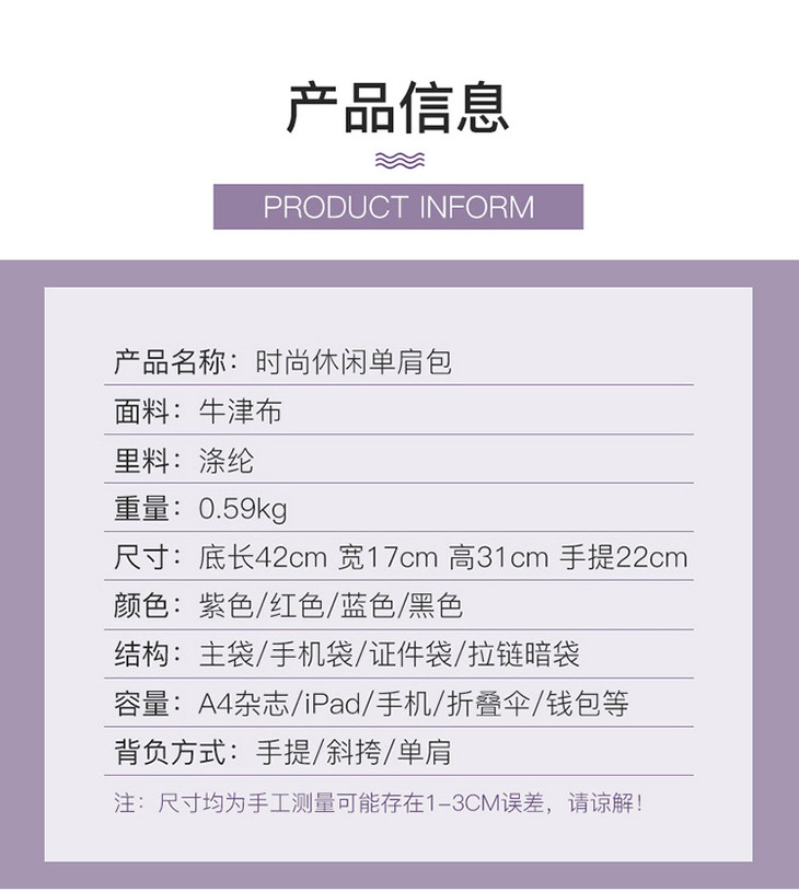 牛津布大容量手提女包欧美时尚单肩斜跨包