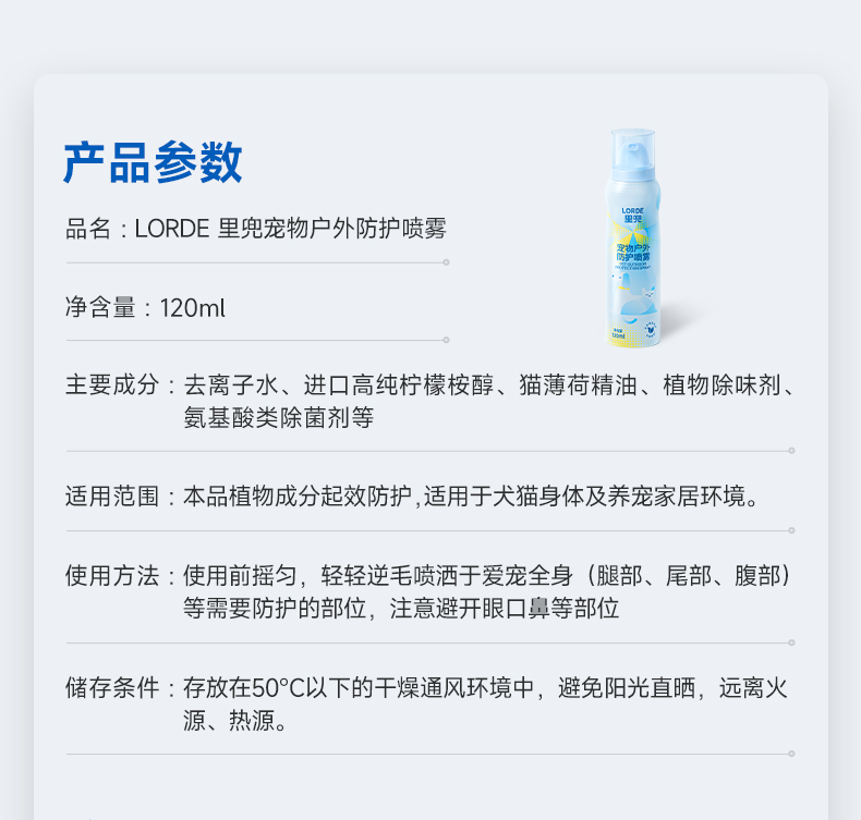 LORDE里兜宠物外出喷雾狗狗避防护喷剂猫咪户外防护喷雾120ml