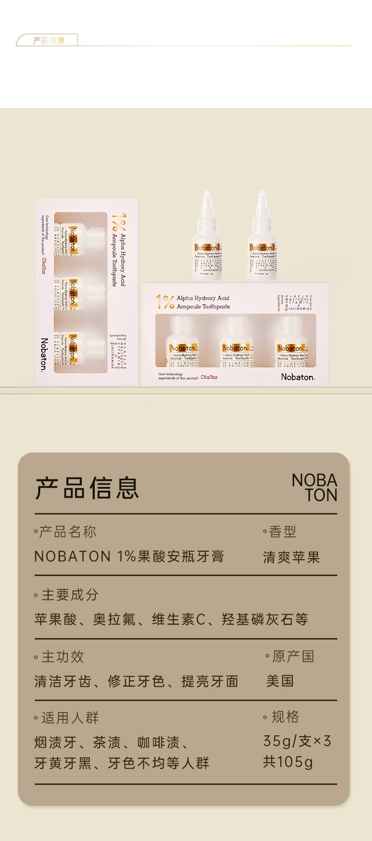 红毯发光牙膏 安瓶精华牙膏3款 1%果酸/2%乳香/5%HAP 诺巴顿 国内发货