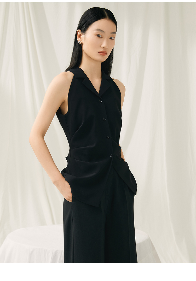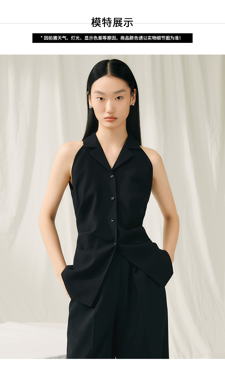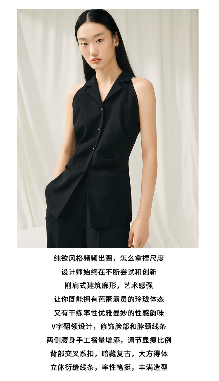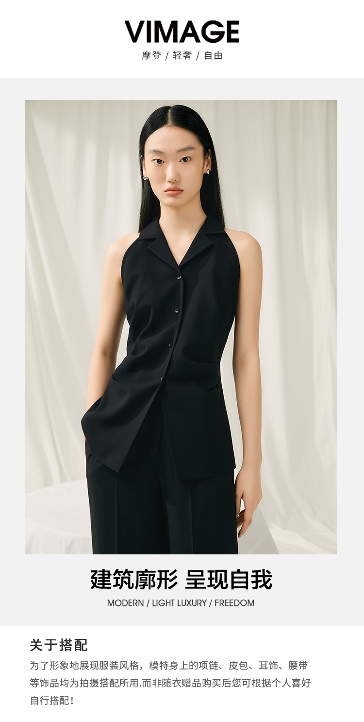 VIMAGE纬漫纪夏季新款通勤气质显瘦百搭无袖衬衣V1909511
