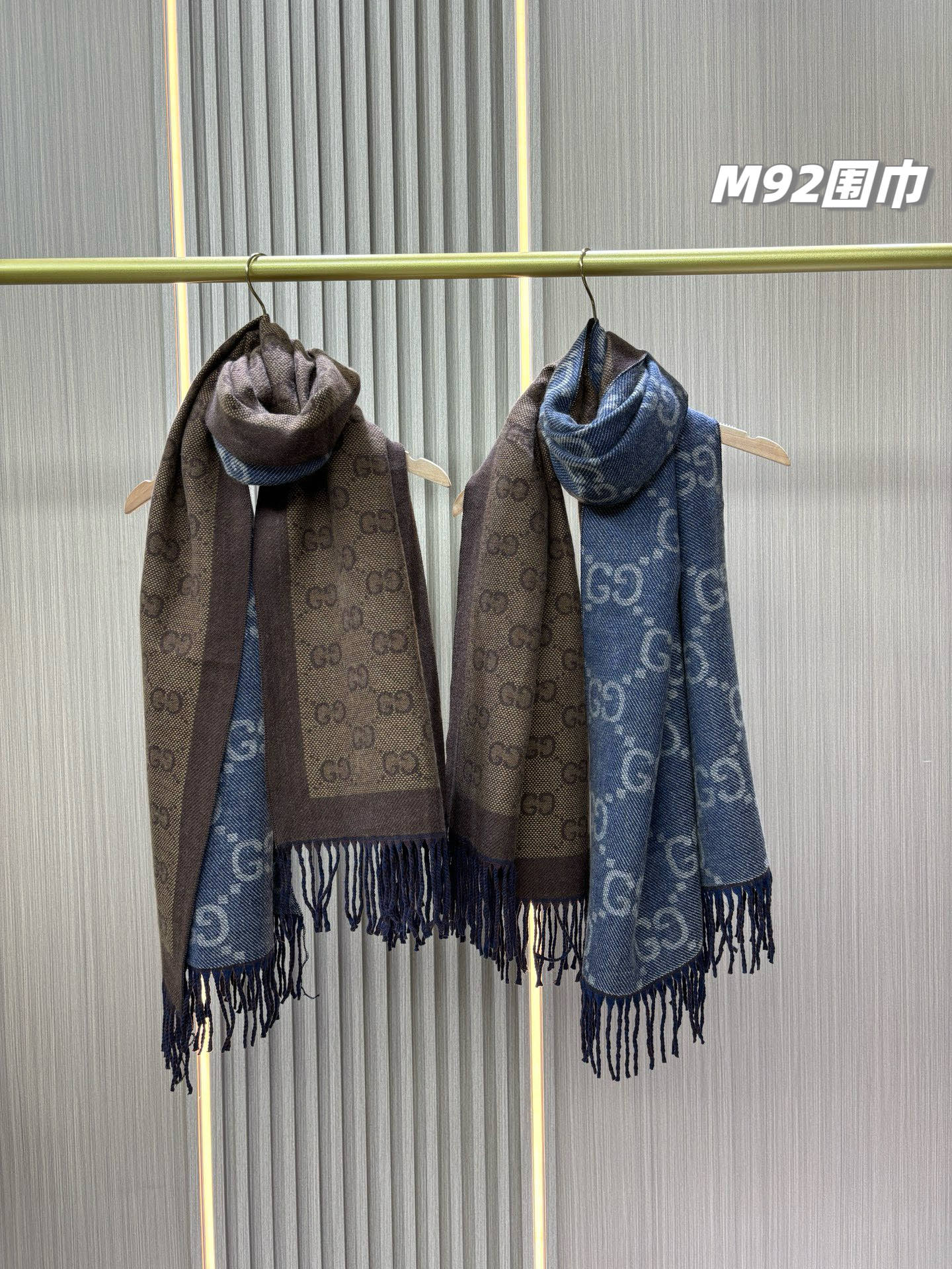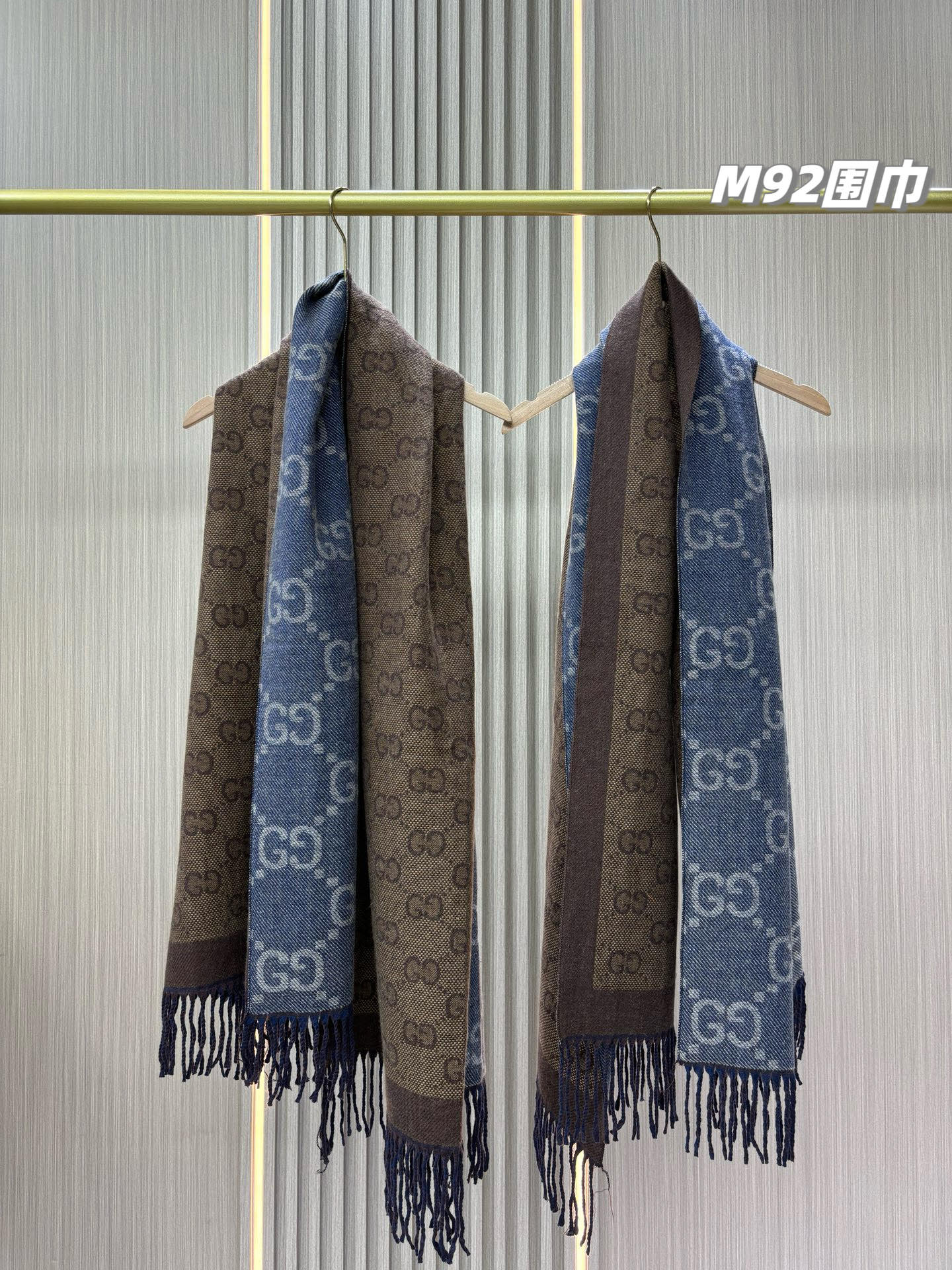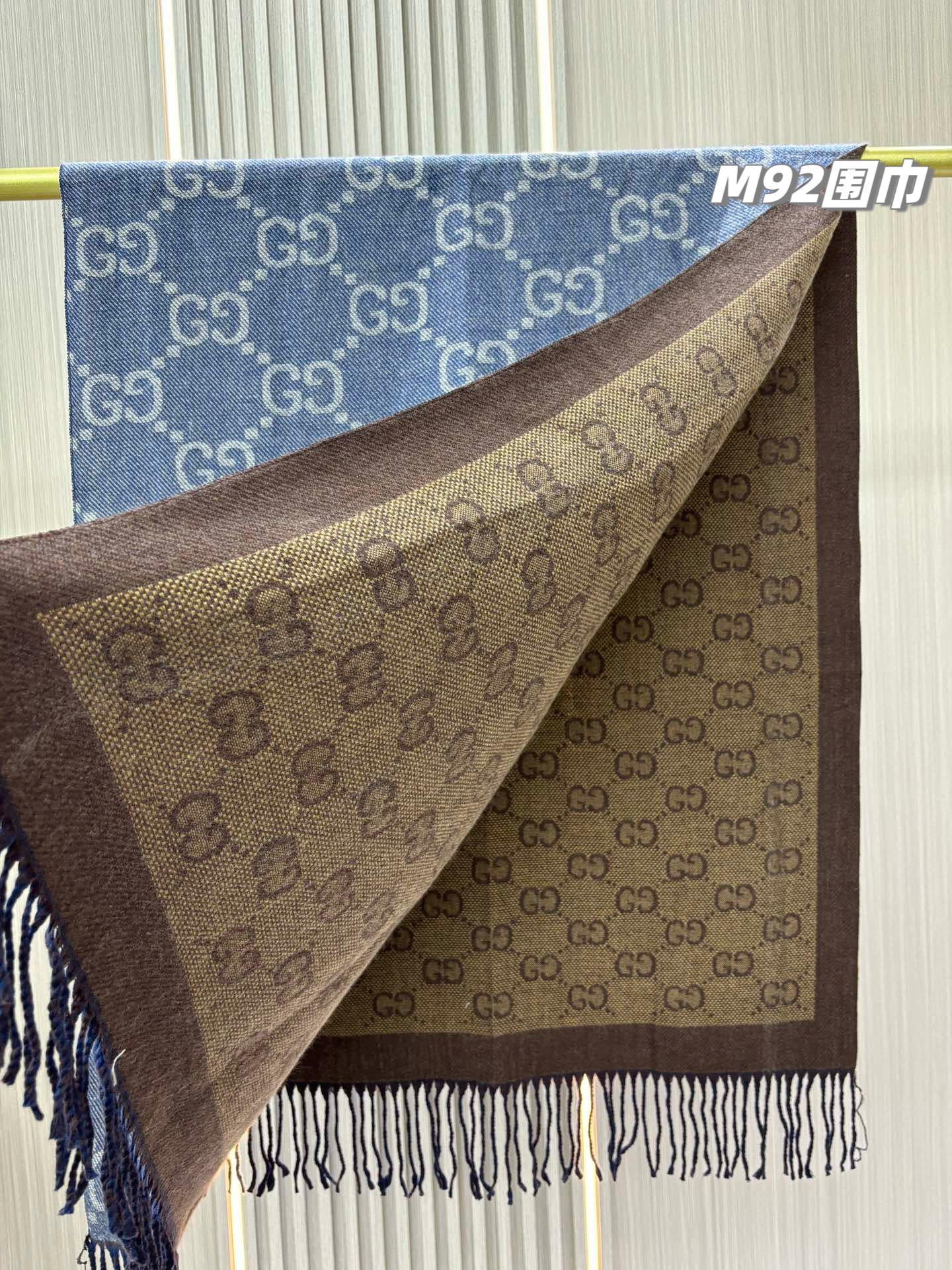 最有气质的雾霾蓝!!穿搭必入的爆款,如果今年秋冬只买一条围巾,那么一定是它gucci双面雾霾蓝羊毛围巾,小姐姐随意一披,真的有被惊艳到,也太好看百搭了吧!围巾是双面双色,一面雾霾蓝一面棕色,可以随意切换风格!标志性的logo图形为此款围巾注入前卫气息,醒目的品牌标志,此款围巾精美而温暖,同时可轻松打造百变造型,闭眼收的好货,无论尺寸和手感都刚刚好,完美……