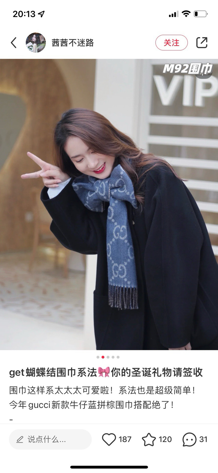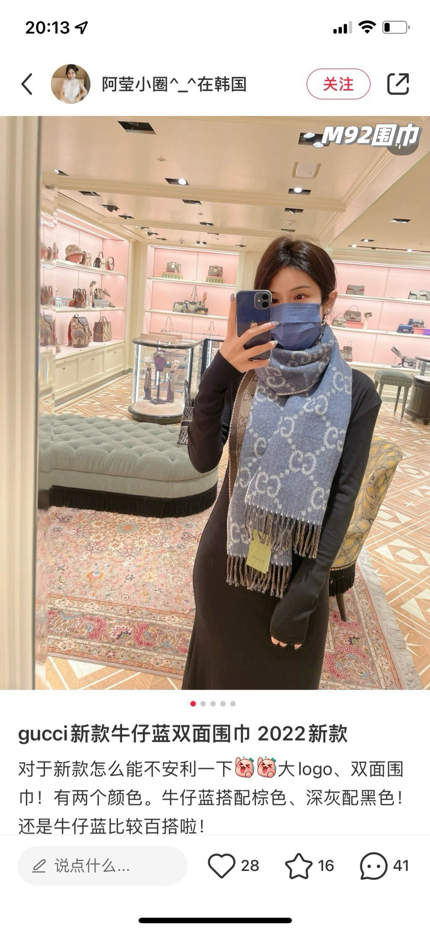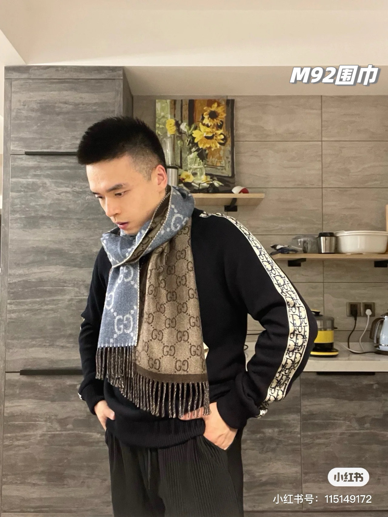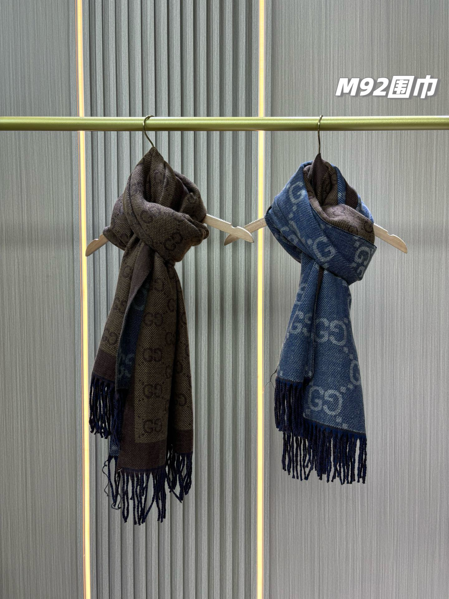 最有气质的雾霾蓝!!穿搭必入的爆款,如果今年秋冬只买一条围巾,那么一定是它gucci双面雾霾蓝羊毛围巾,小姐姐随意一披,真的有被惊艳到,也太好看百搭了吧!围巾是双面双色,一面雾霾蓝一面棕色,可以随意切换风格!标志性的logo图形为此款围巾注入前卫气息,醒目的品牌标志,此款围巾精美而温暖,同时可轻松打造百变造型,闭眼收的好货,无论尺寸和手感都刚刚好,完美……
