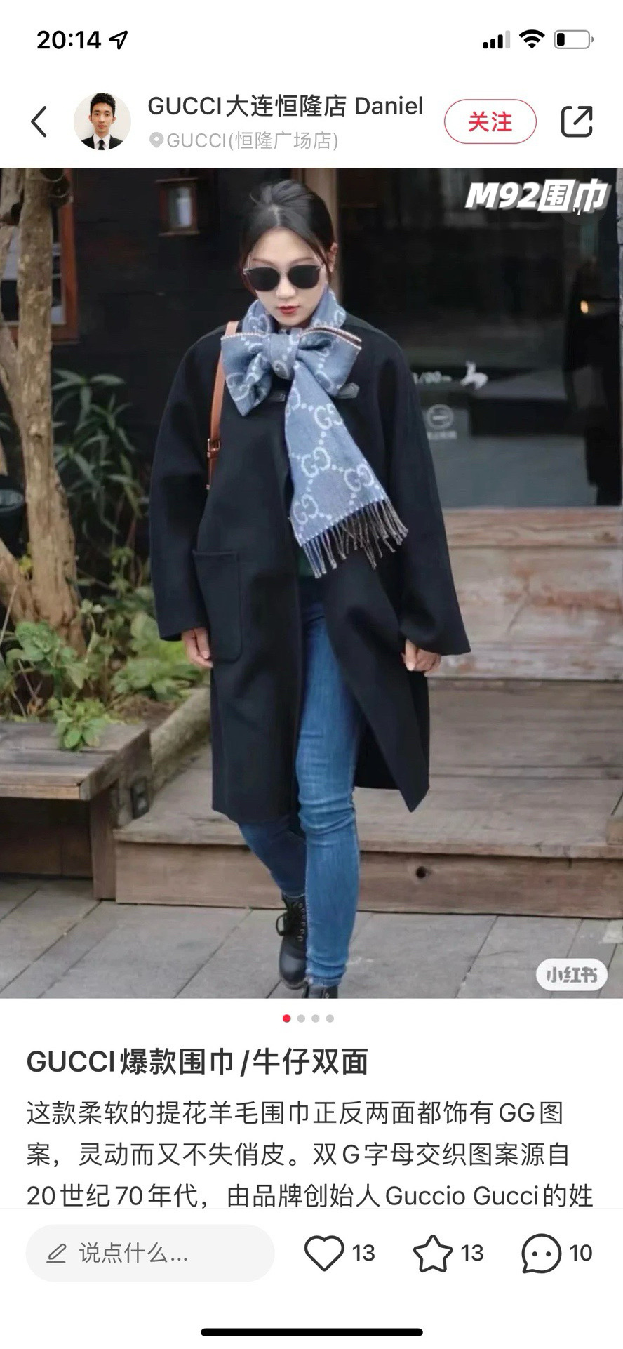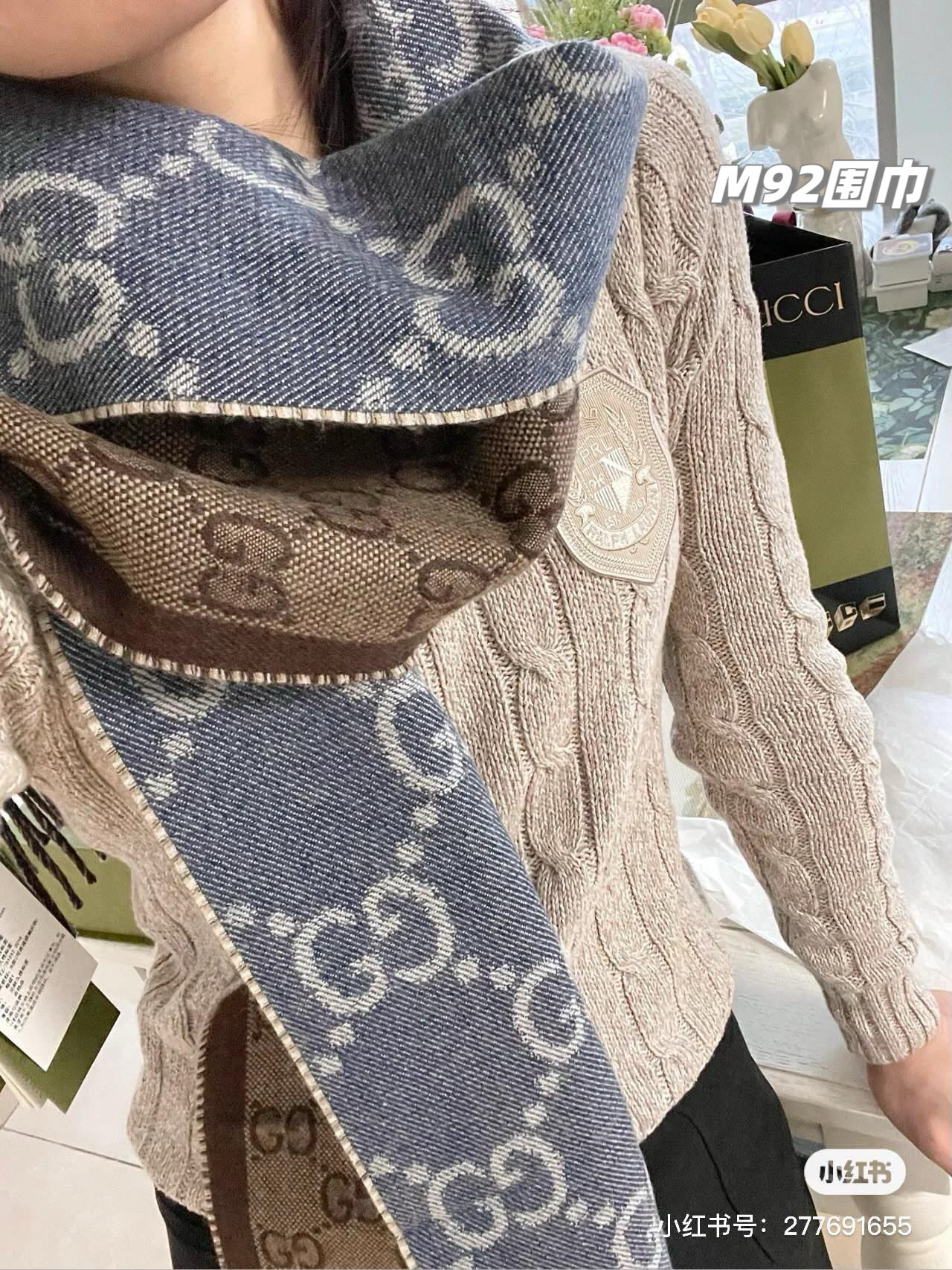可做情侣款!穿哪件衣服都可以搭,稀罕到骨子里,GG标识作为G家颇具代表性的传统精髓,以饱含新意的现代方式推陈出新,呈现不同凡响的层次、绝对的秒杀所有的市面上的同类产品,面料非常亲肤手感超好,有着羊毛的细腻柔糯感,又有堪比蚕丝的丝滑质感!特别显白!一年四季都可以用的上,夏天放office 做披肩也是不错的!
