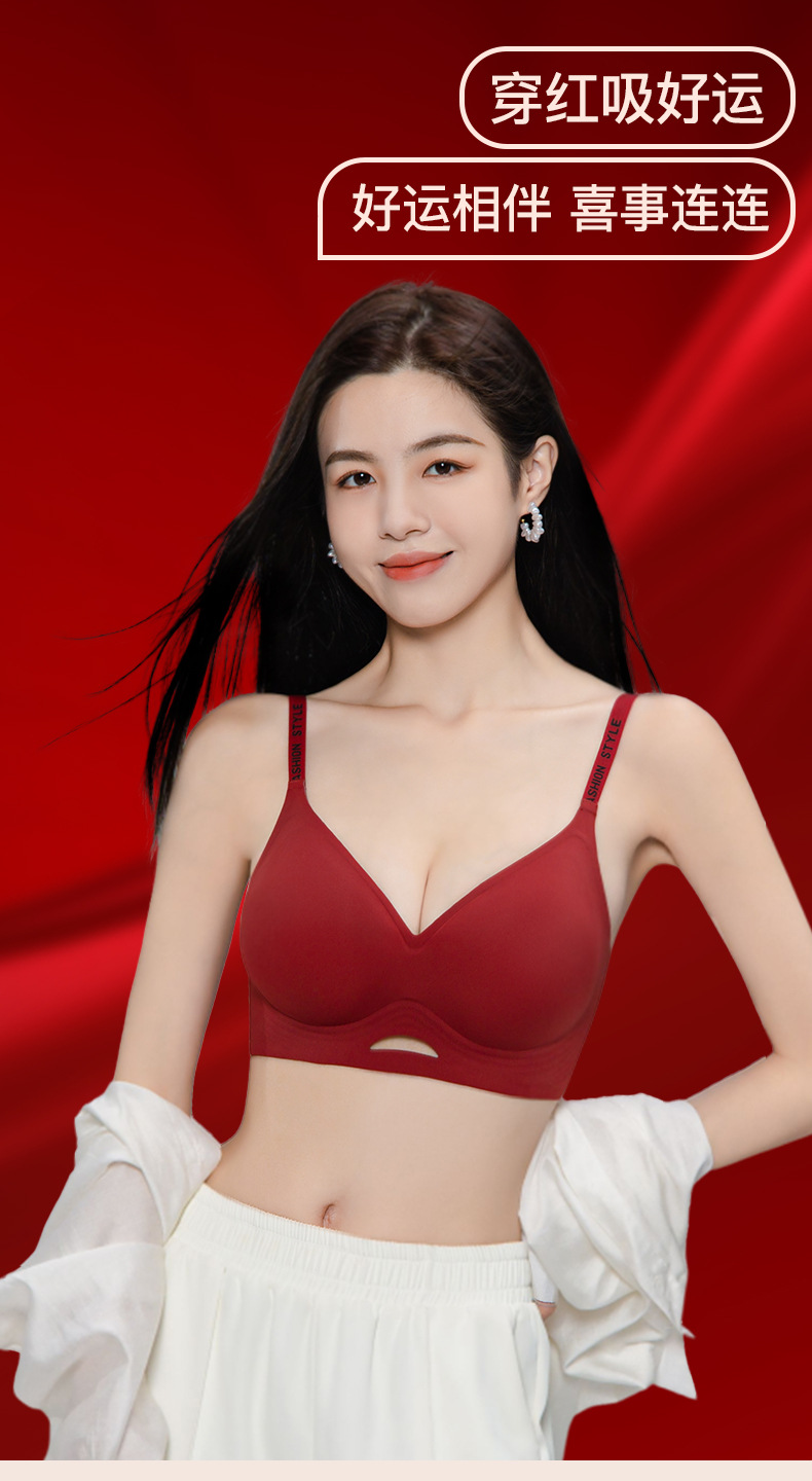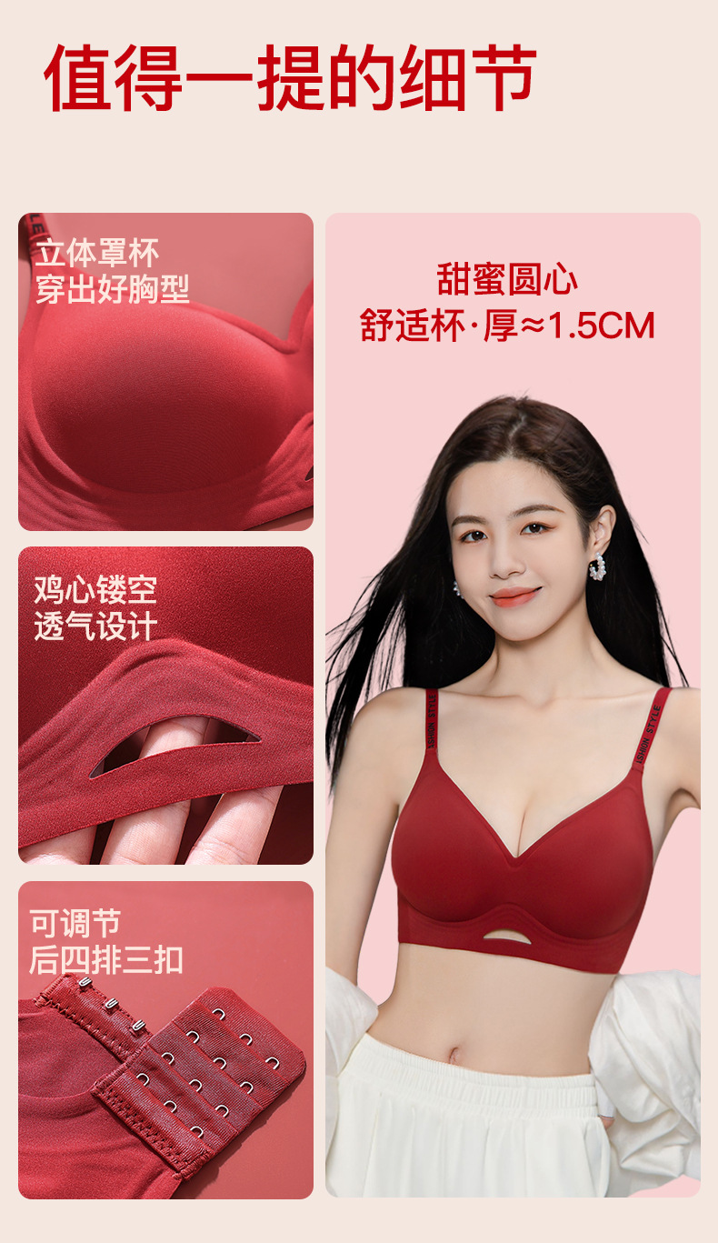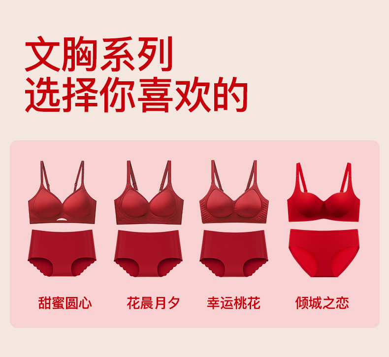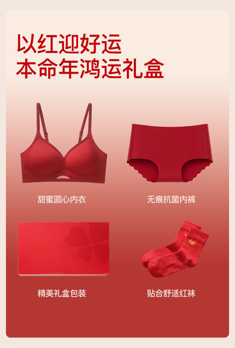 【本命年红色内衣内裤】马年新娘结婚礼物 无痕小胸聚拢文胸套装礼盒