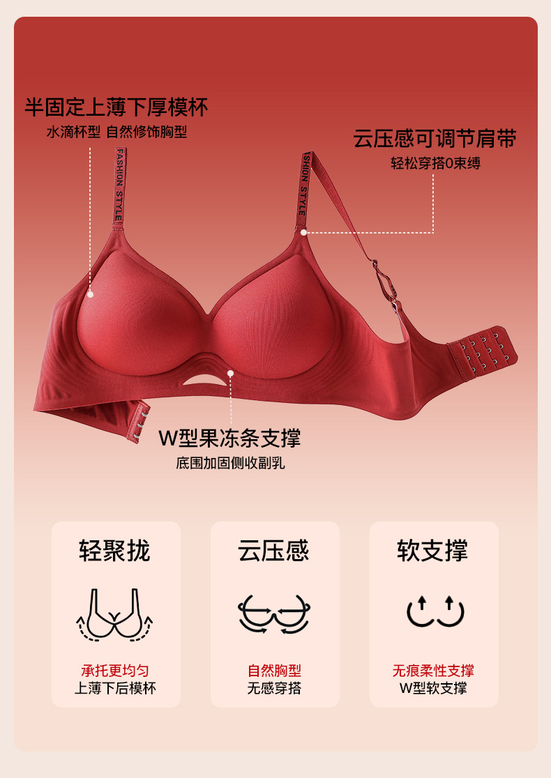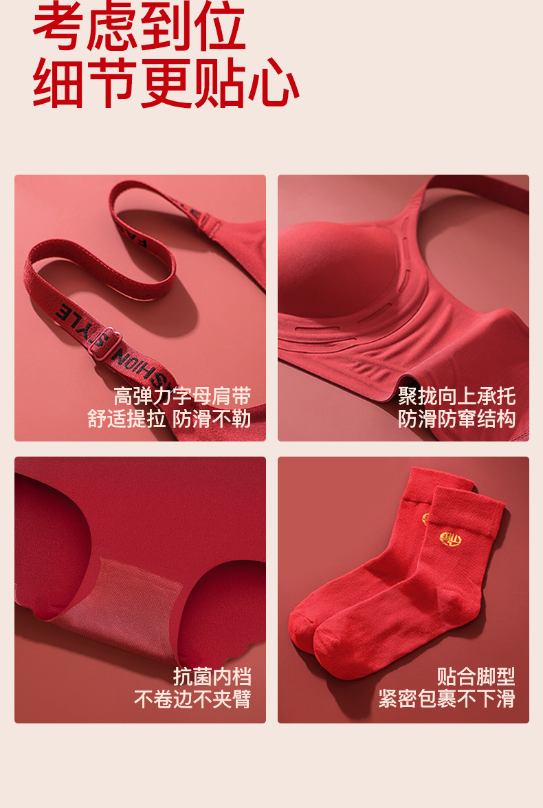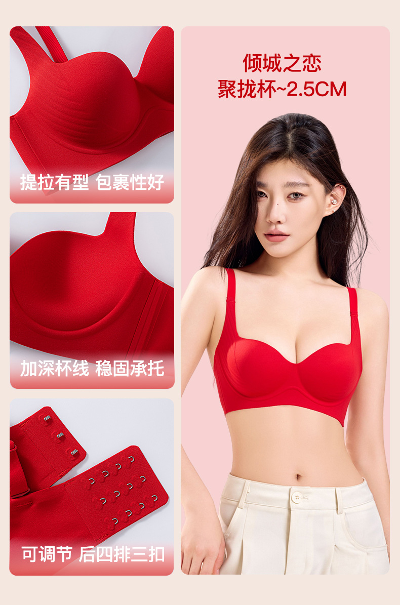 【本命年红色内衣内裤】马年新娘结婚礼物 无痕小胸聚拢文胸套装礼盒
