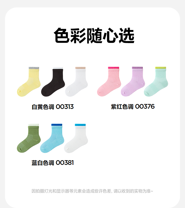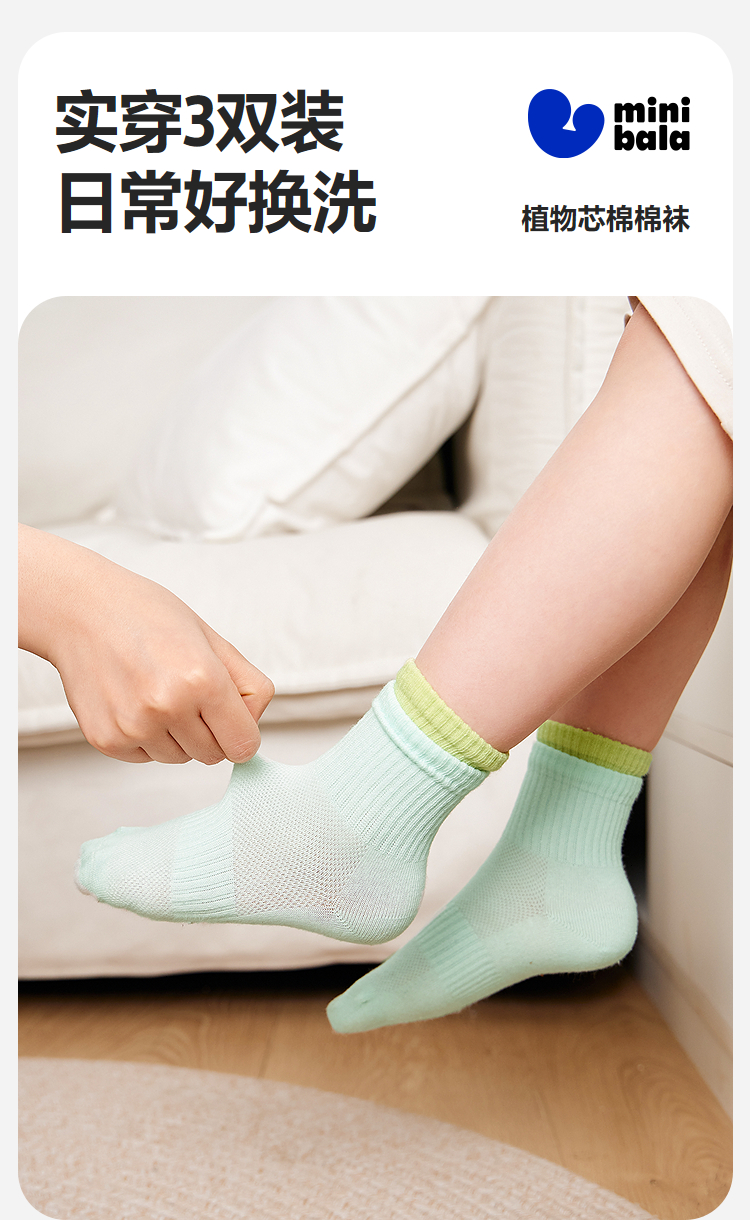 【3双装】迷你巴拉男女童亲肤无骨透气袜子宝宝棉弹袜不勒脚