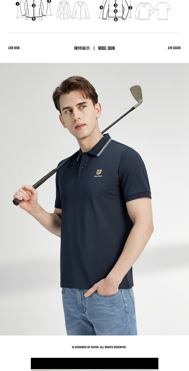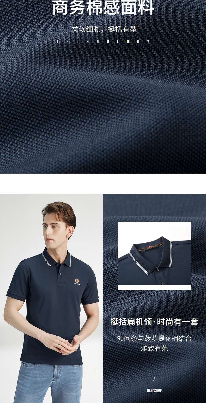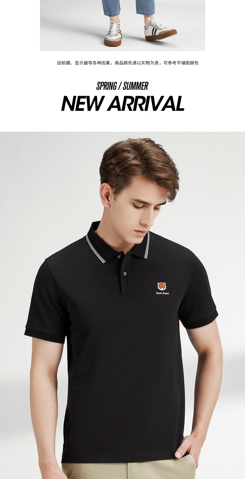 【商务棉感】柒牌男士polo衫夏季时尚休闲翻领小老虎短袖上衣122T70070 122T70070