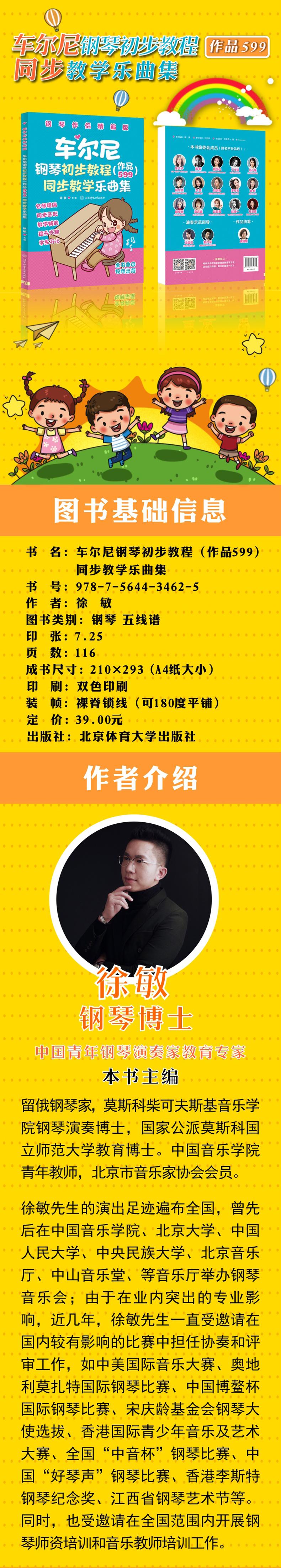 "本书是中国初级钢琴阶段必弹的基础钢琴教材车尔尼599的辅助用书,具备以下特点: 1.适合基础钢琴学习者作为配合“车尔尼”系列练习曲辅助、拓展练习的教辅用书使用。 2.解决“车尔尼”系列练习曲过于强调手指技巧的训练,兼顾作品音乐性,从而培养初学者音乐感和表现力,使其爱上音乐。 3.选取作品风格多样、内容丰富,同时搭配视频示范,满足了国内钢琴初学者的需求。"