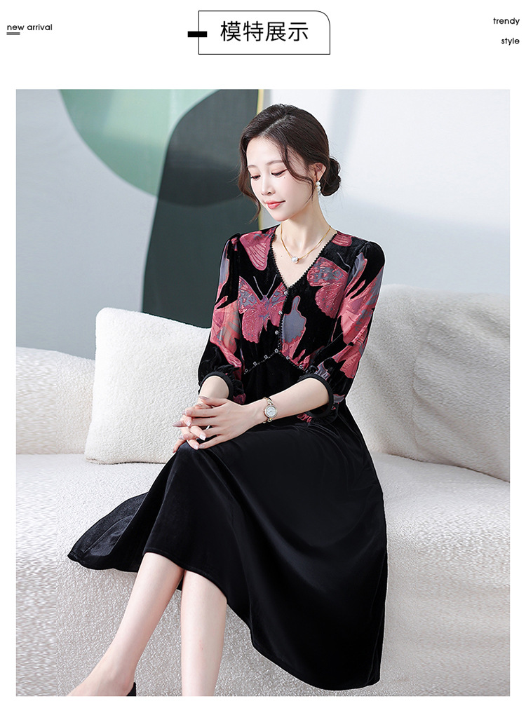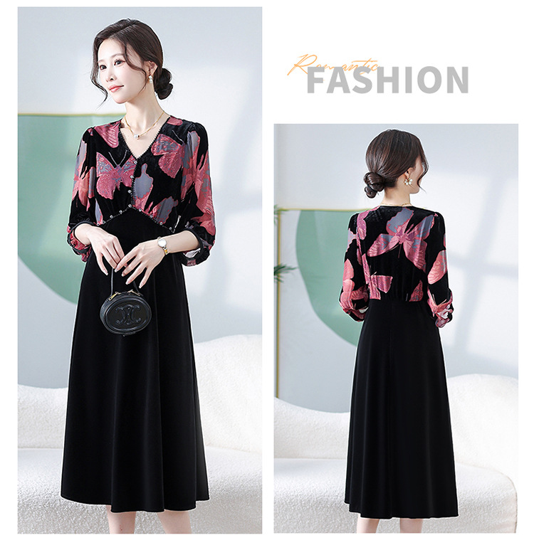 时尚气质,拼接中长款连衣裙QYM-JJ-C1072-Y