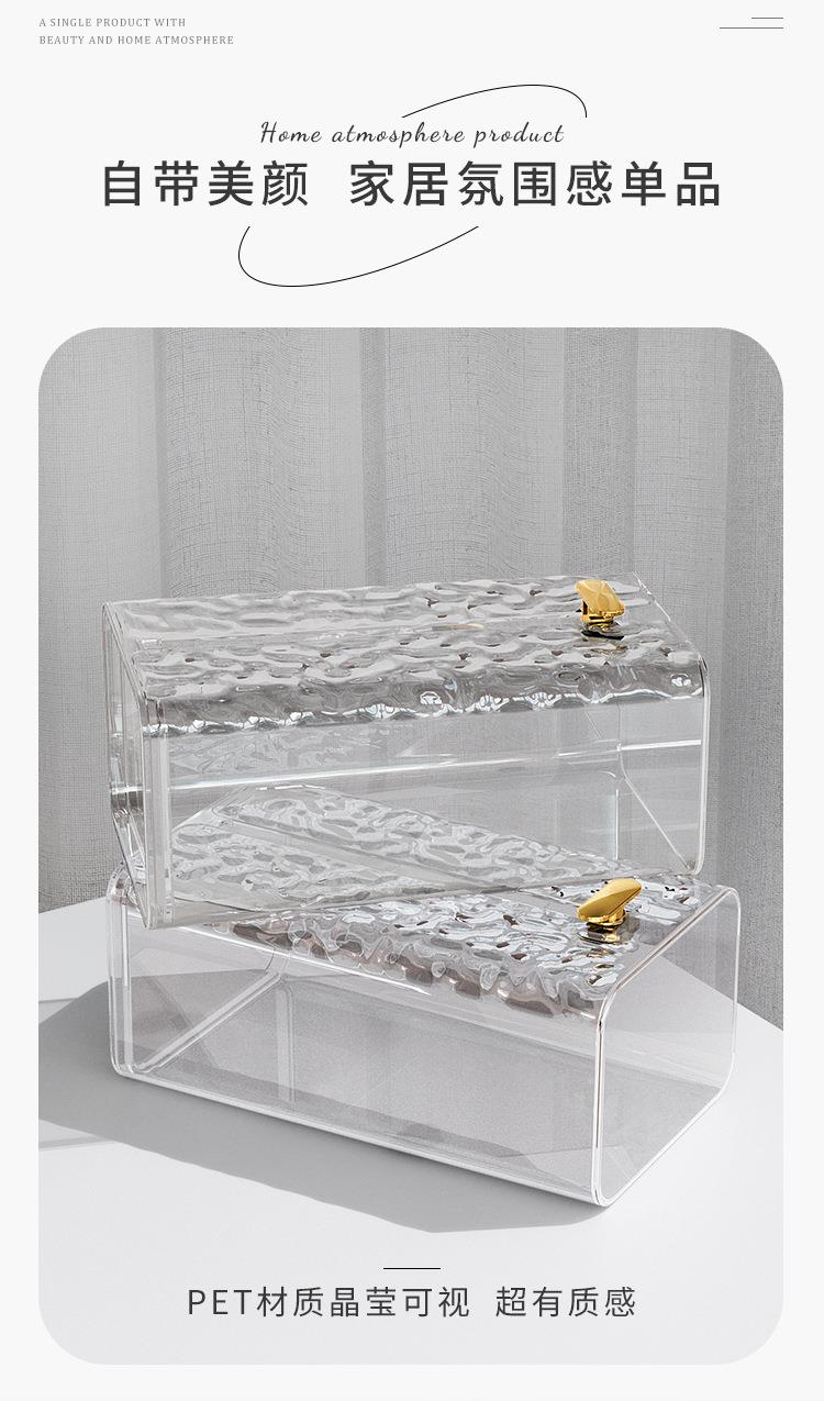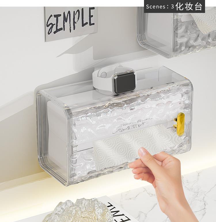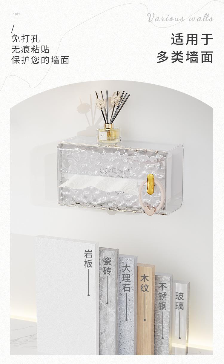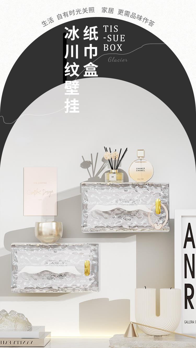 家用桌面纸巾盒ins简约多功能卫生间高颜值冰川纹壁挂式抽纸盒